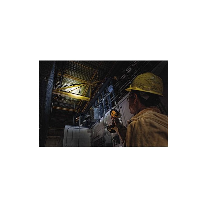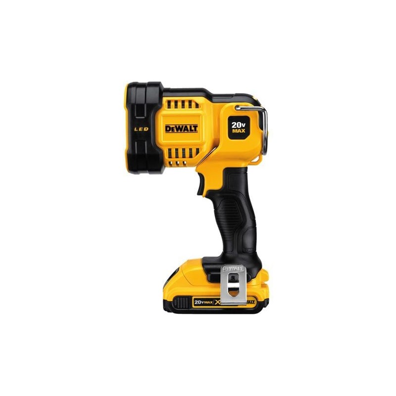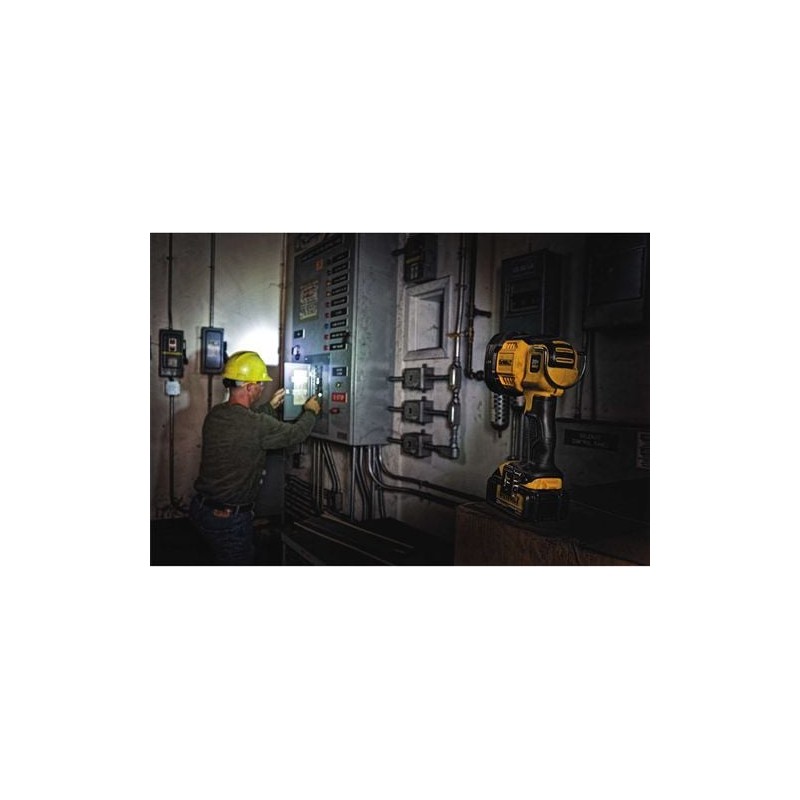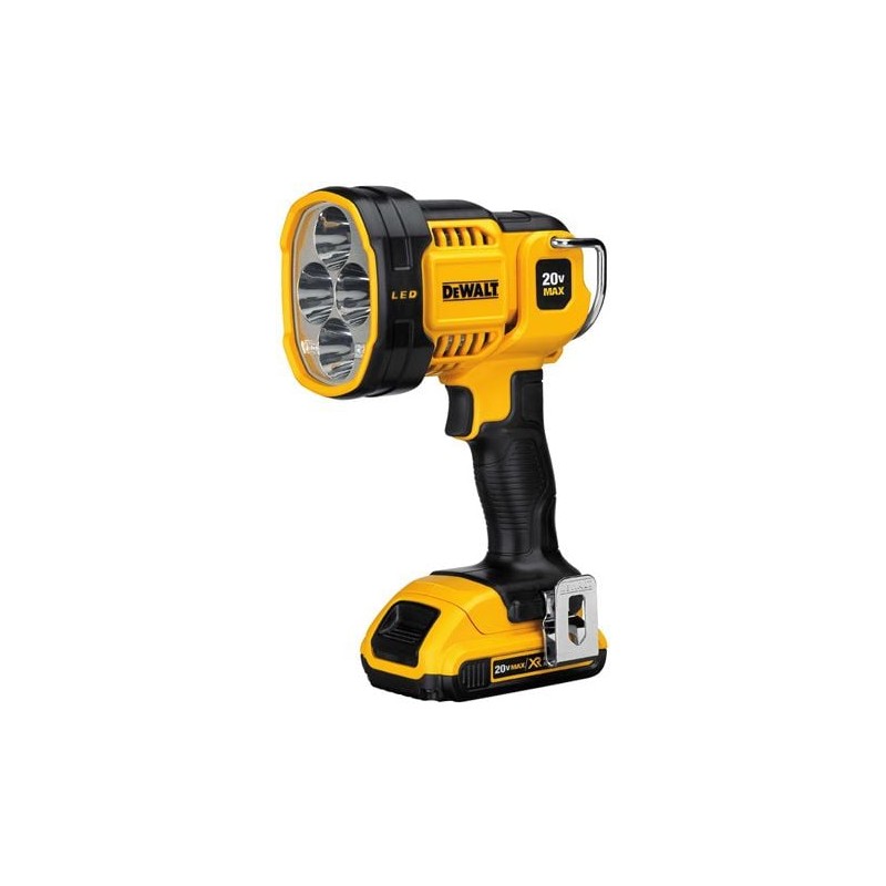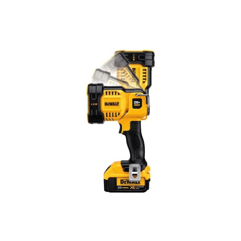 Ein sehr leistungsstarker Scheinwerfer mit hoher Leistung und stark gebündeltem Lichtstrahl. Der Hersteller gibt eine Reichweite von 400 Metern an, was ein beeindruckendes Ergebnis ist. Das Gerät wird mit einem 18-V-Akku betrieben; ein voll aufgeladener Akku mit einer Kapazität von 5,0 Ah ermöglicht 10 Stunden Dauerbetrieb. Akku und Ladegerät sind nicht im Lieferumfang enthalten.
