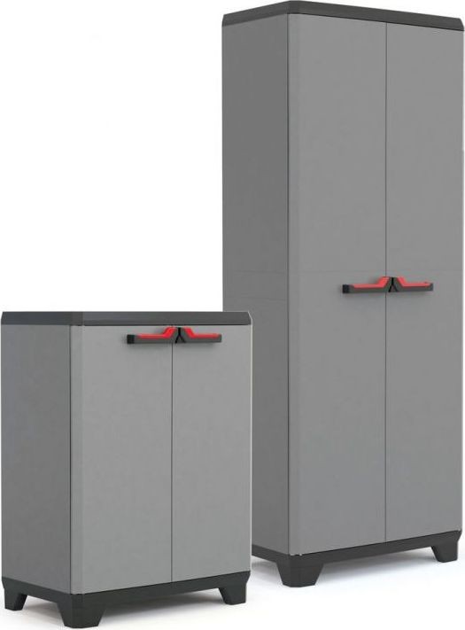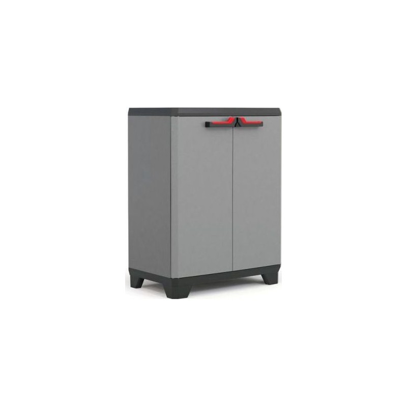 Der Schrank ist ein großartiger Helfer beim Ordnen verschiedener Dinge. – Im Inneren des Schranks befinden sich Einlegeböden, die beliebig angeordnet werden können. – Die Tragkraft jedes Einlegebodens beträgt bis zu 15 kg. Die Montage des Schranks durch Fachfirmen dauert etwa zehn Minuten. Der Schrank ist mit einer festen Öse zur Befestigung des Verschlusses ausgestattet. Ideal für die Aufstellung in der Werkstatt, Garage oder im Keller. Technische Daten: Produkthöhe: 90 cm Produktbreite: 68 cm Produktlänge: 39 cm Belastbarkeit: 15 kg (pro Einlegeboden) Material: Kunststoff Farbe: Grau Lieferumfang: 1x Schrank STILO LOW
