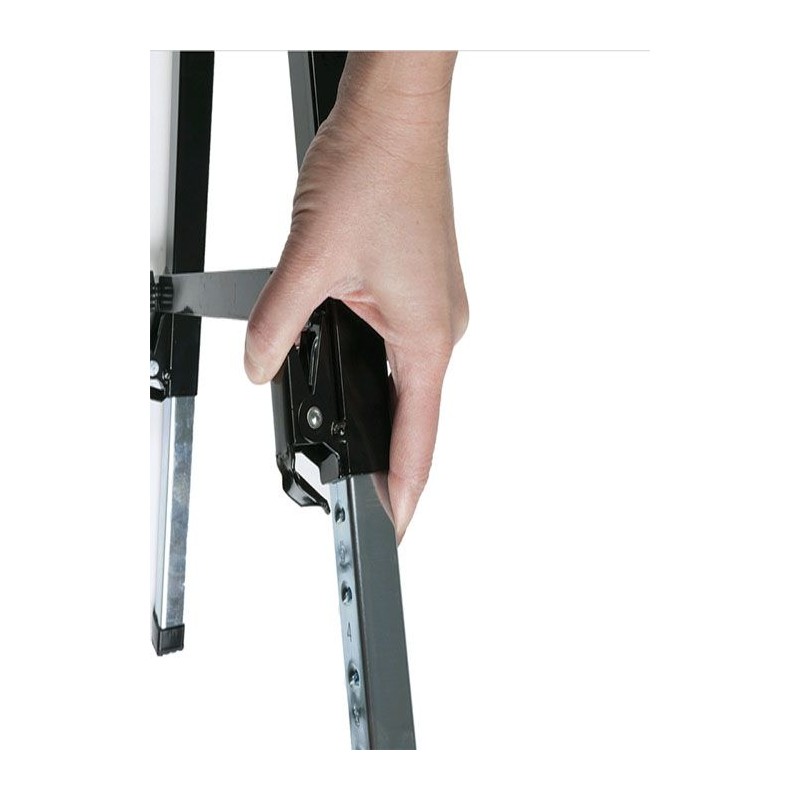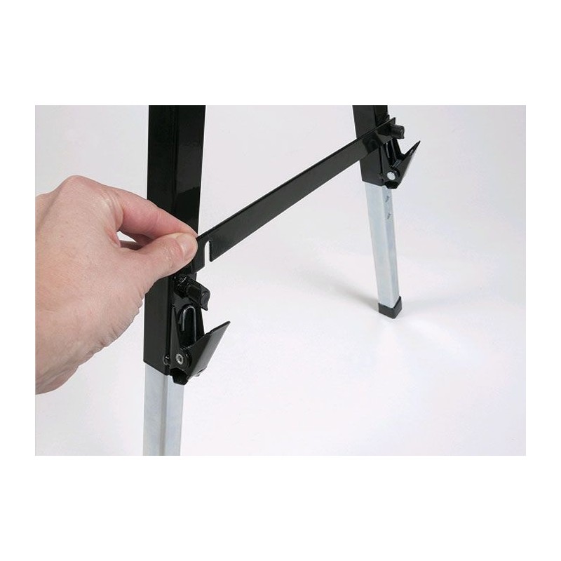 Dank der leichten Metallkonstruktion lässt er sich leicht aufstellen und beliebig transportieren. Der Ständer verfügt über höhenverstellbare Beine und sorgt dank der rutschfesten Oberfläche und der Sicherheitsstange für maximalen Komfort und Sicherheit bei der Arbeit. Nach getaner Arbeit lässt sich der Ständer leicht zusammenklappen, sodass er nicht viel Platz einnimmt.