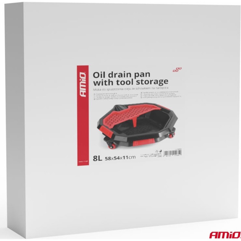Ölauffangwanne auf Rollen mit Werkzeugfach amio-04264