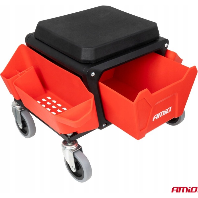 Werkstattstuhl auf Rollen mit Werkzeugfach, 150 kg, AMIO-04268