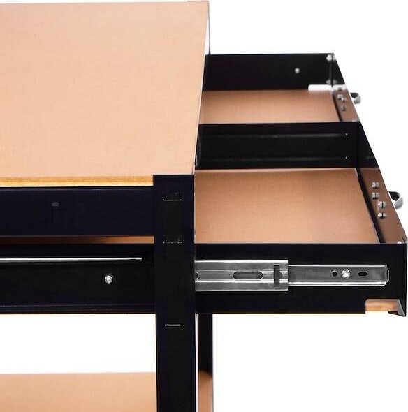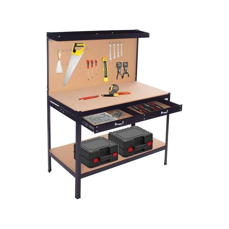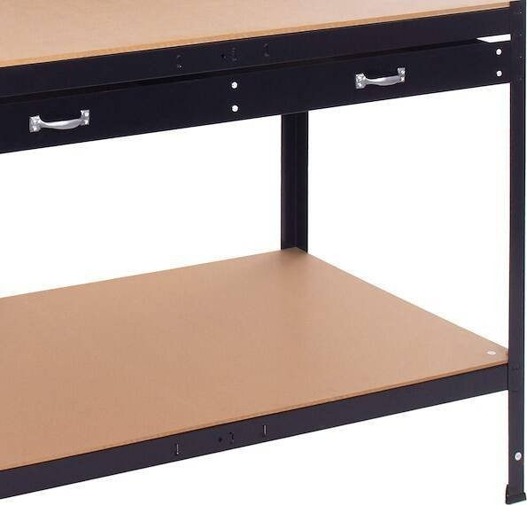 Der Werkbank von Springos® ist ein besonders langlebiges und funktionales Möbelstück, das in jeder Garage oder Werkstatt zum Einsatz kommt. Dank der soliden Konstruktion aus verzinktem Metall und der Arbeitsplatte aus MDF ist der Tisch entsprechend robust und stabil. Darüber hinaus ist der Tisch mit einer praktischen Schublade unter der Arbeitsplatte ausgestattet, die eine maximale Belastung von bis zu 40 kg aushält und sich somit ideal zur Aufbewahrung von Werkzeugen und Zubehör eignet.