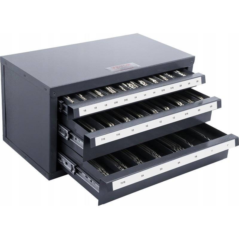 Dieses Set aus drei Schubladen mit Schaftfräser-Spendern erleichtert die Aufbewahrung Ihrer Schaftfräsersammlung. Die Fächer bieten Platz für Fräser mit einem Durchmesser von 3,1 bis 25 mm und sorgen für schnelle Identifizierung und Ordnung.
