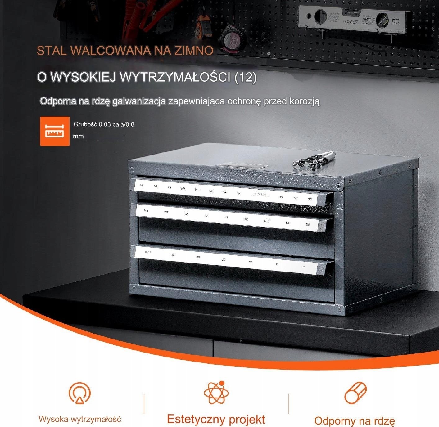 Das Schubladenset mit Spendern lässt sich zusammen mit anderen Werkzeugorganisatoren stapeln. Diese Lösung spart Platz im Lager. Je nach Bedarf am Arbeitsplatz können sie auch einzeln verwendet werden.