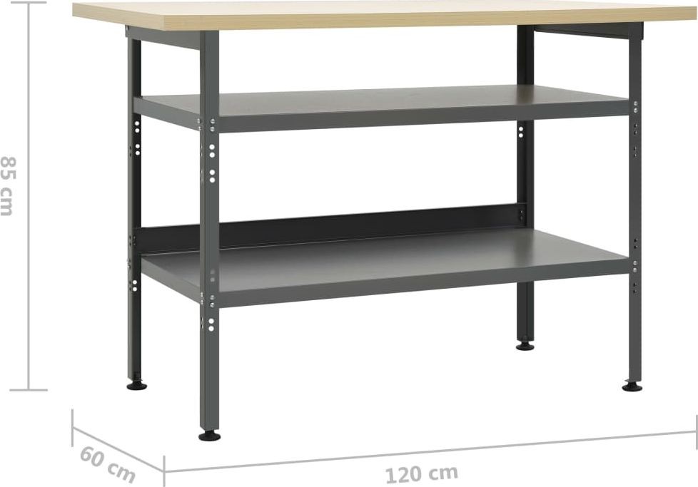 vidaXL Arbeitstisch, grau, 120 x 60 x 85 cm, Stahl