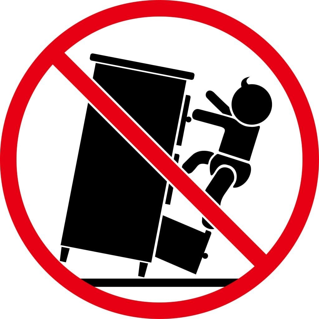 - Um ein Umkippen des Produkts zu verhindern, muss es mit dem mitgelieferten Element an der Wand befestigt werden.