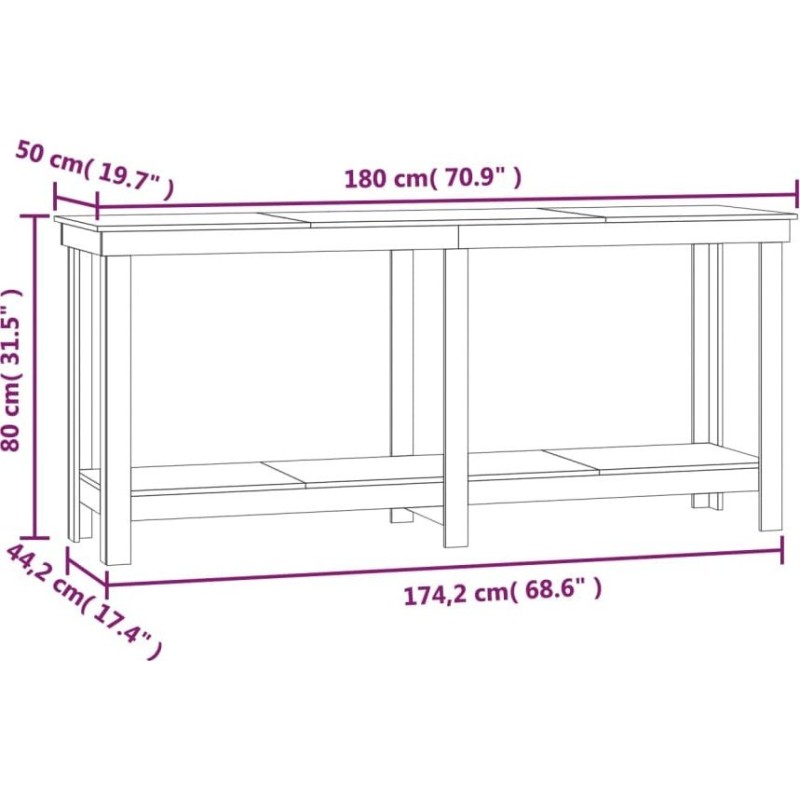 vidaXL vidaXL Arbeitstisch, weiß, 180 x 50 x 80 cm, massives Kiefernholz