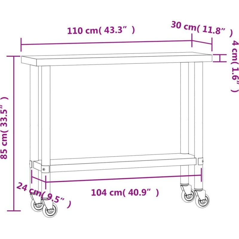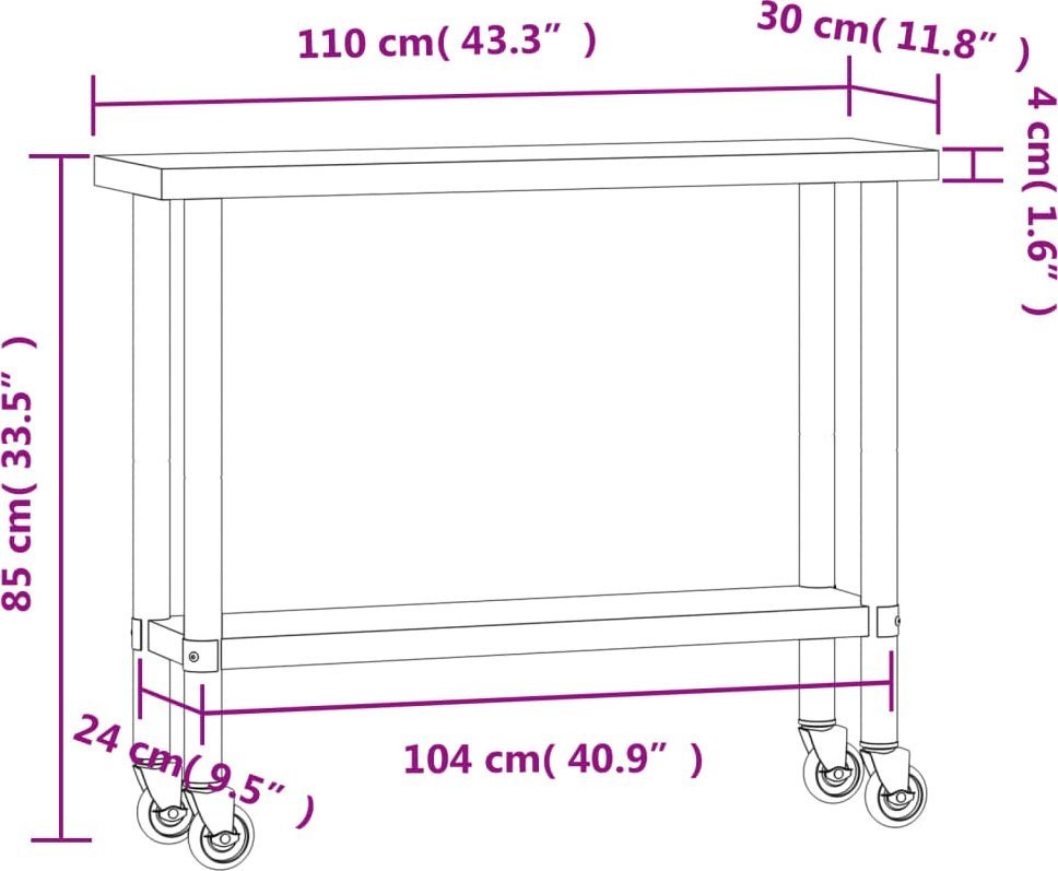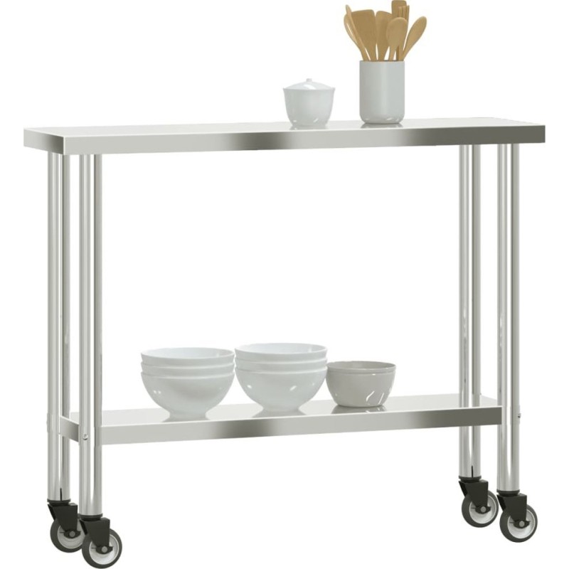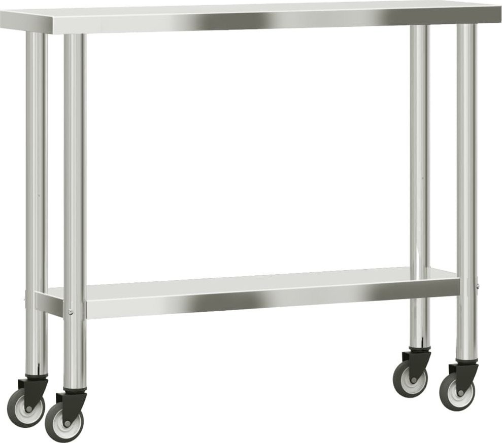 vidaXL Küchenarbeitstisch auf Rollen, 110 x 30 x 85 cm, Edelstahl