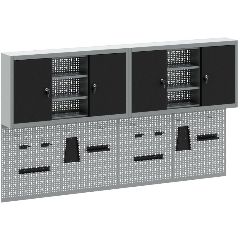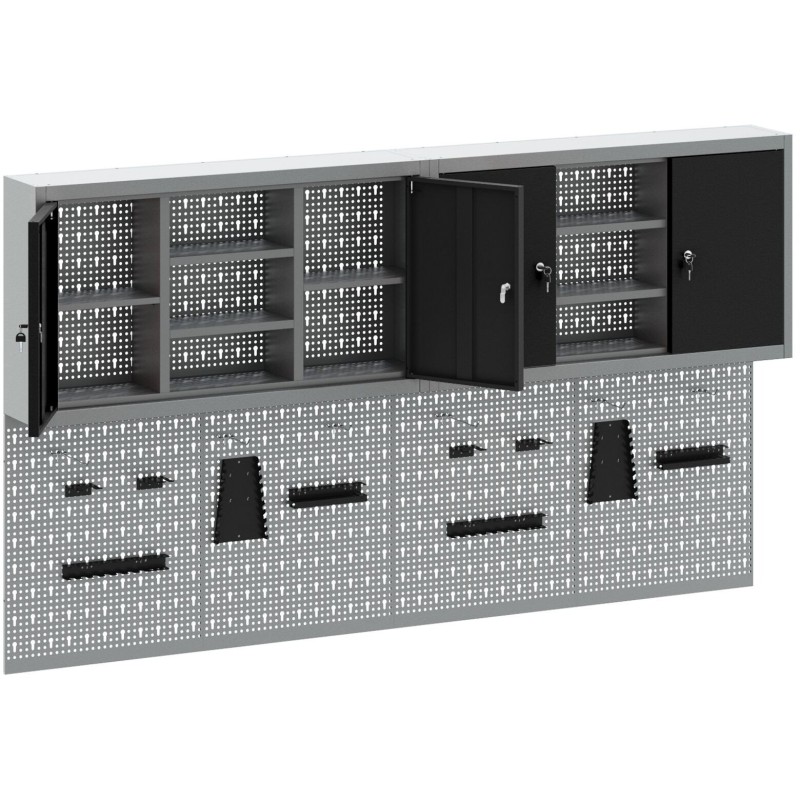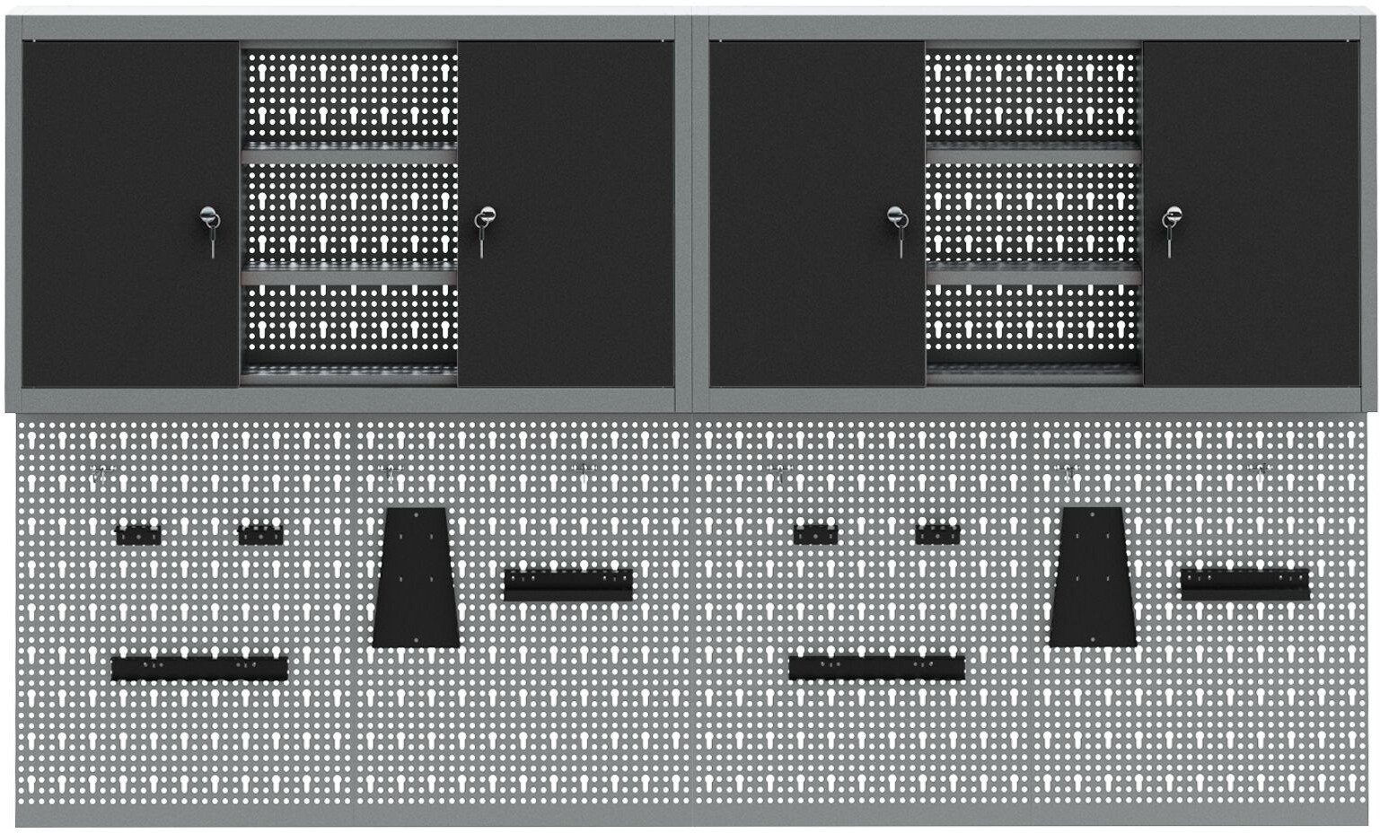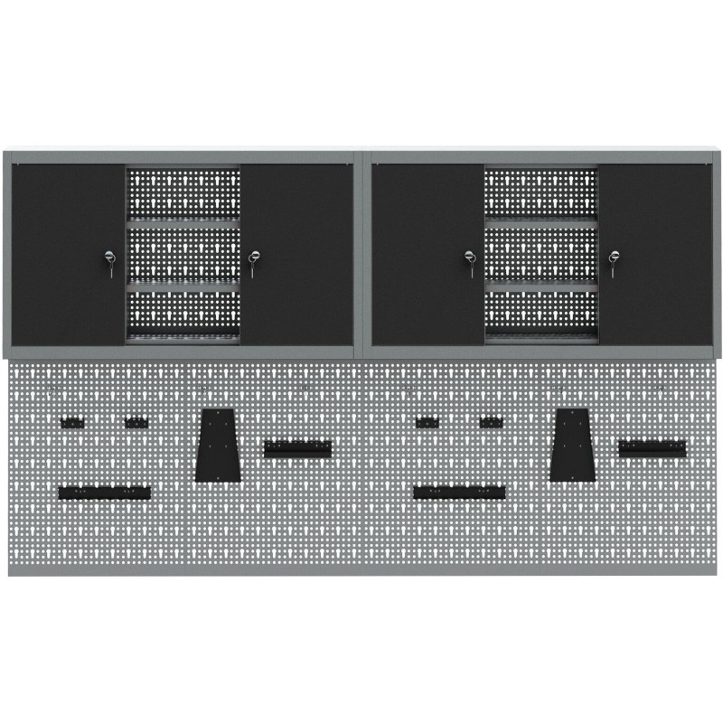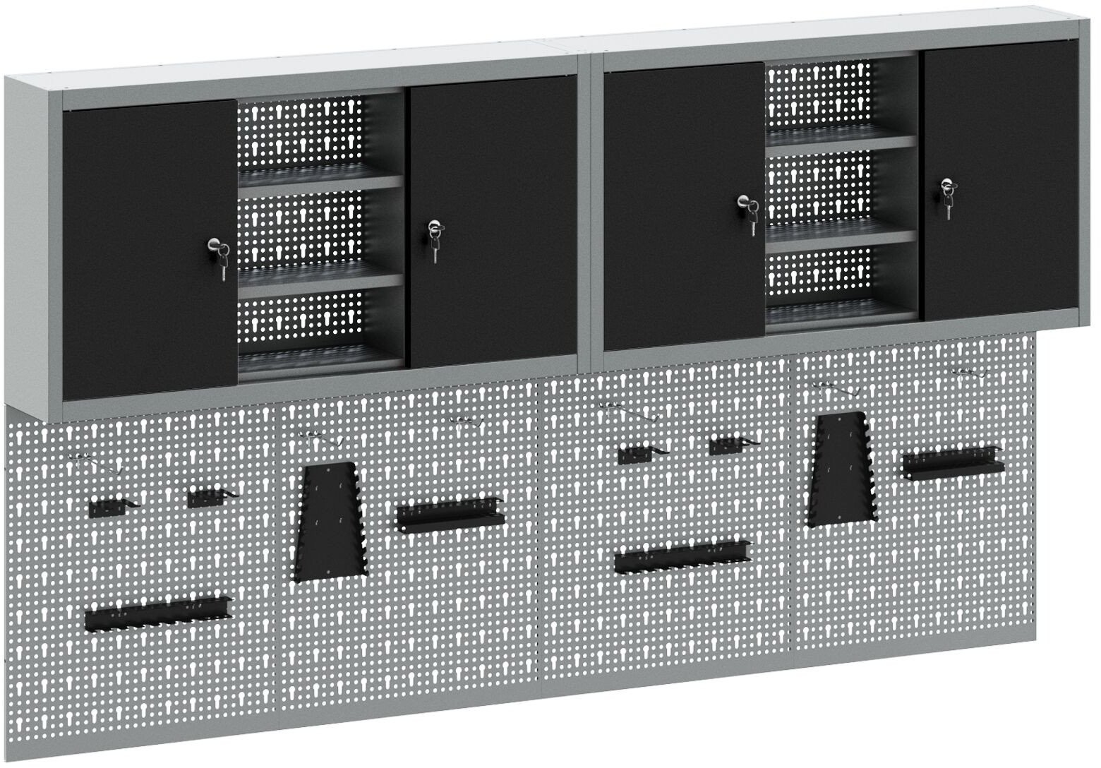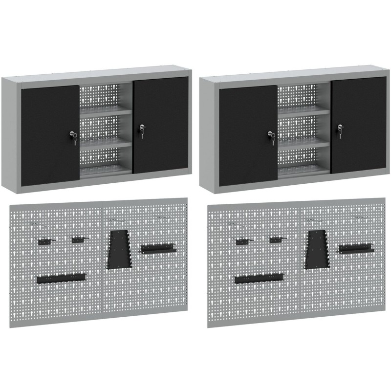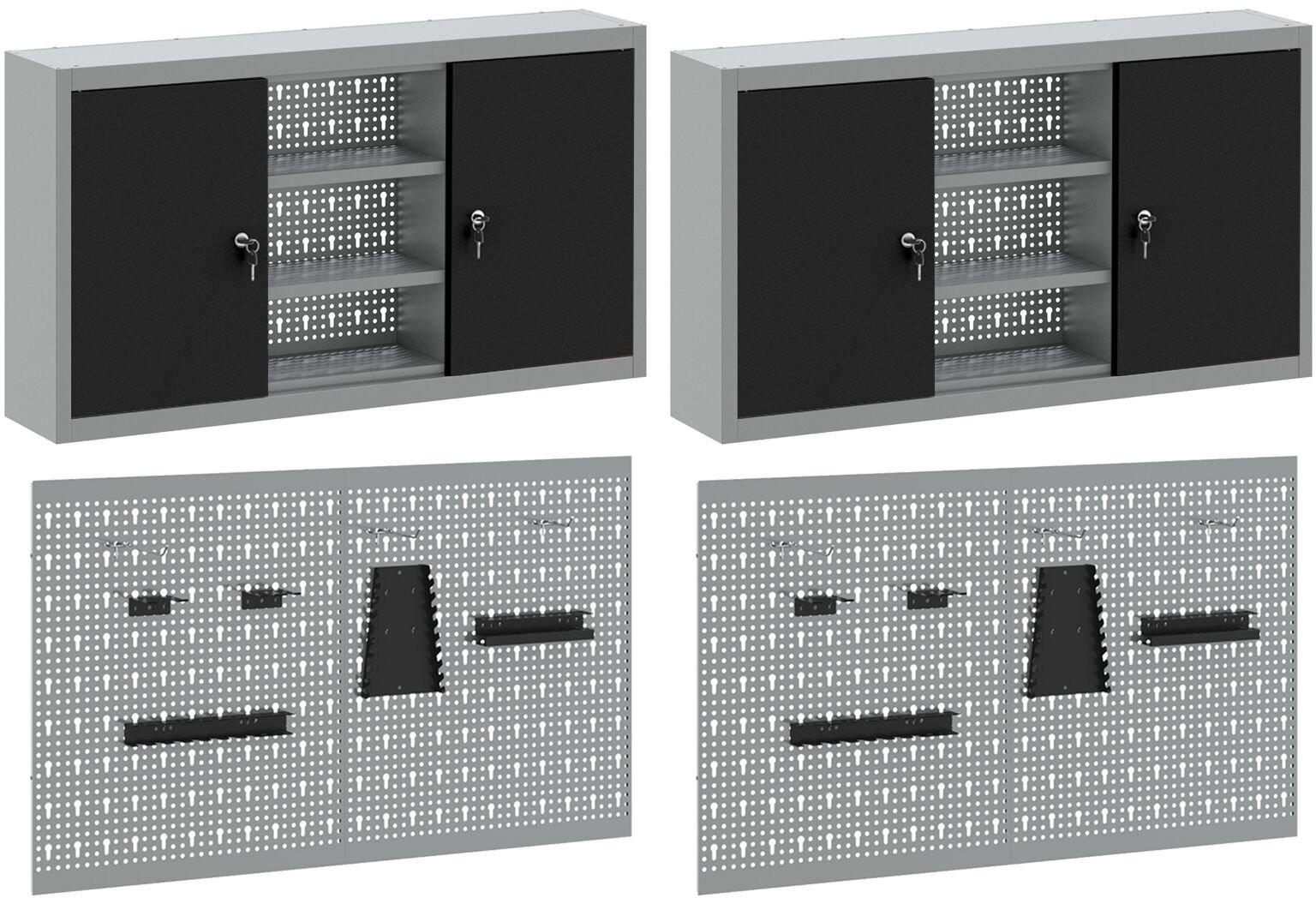 vidaXL Werkzeugschrank-Set, 4-teilig, grau und schwarz, Stahl, mit Haken