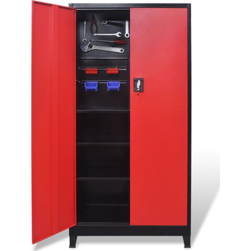 vidaXL Werkzeugschrank, 2 Türen, Stahl, 90 x 40 x 180 cm, schwarz-rot