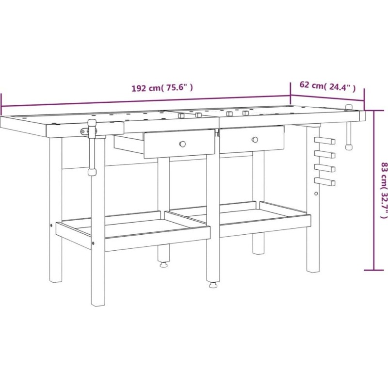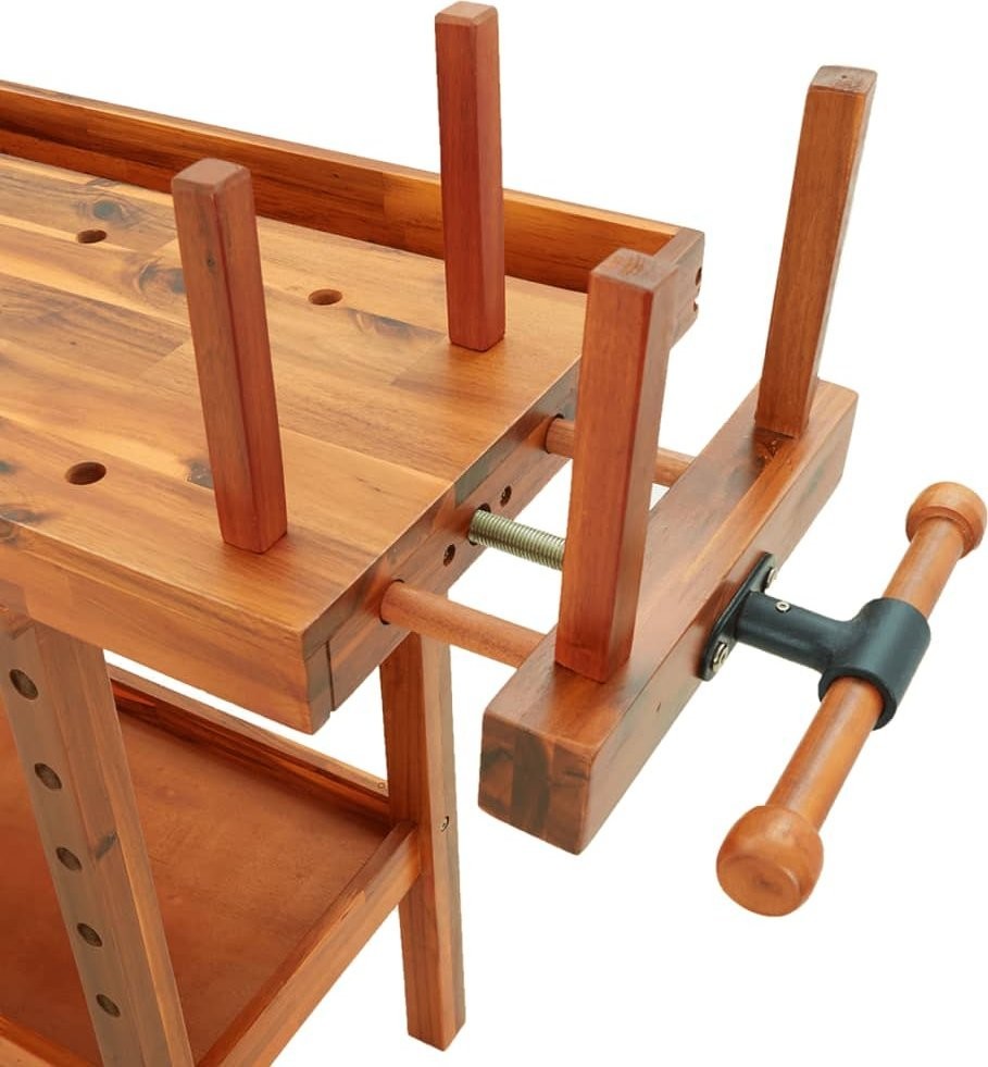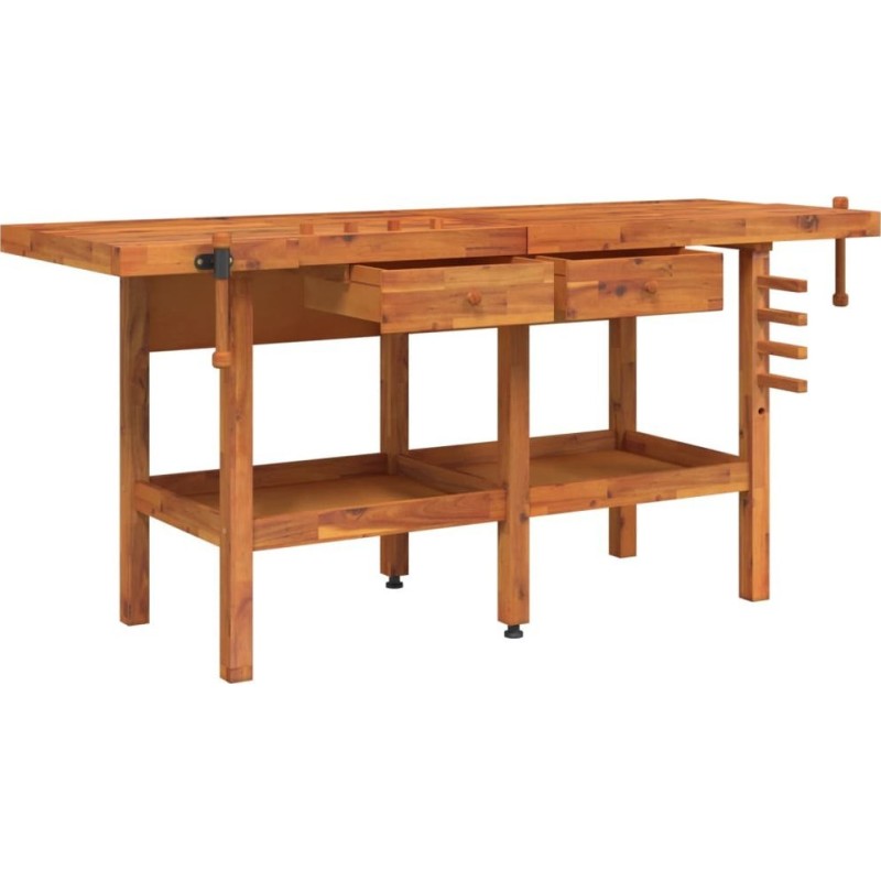 vidaXL vidaXL Arbeitstisch mit Schubladen und Schraubstöcken, 192 x 62 x 83 cm, Akazienholz