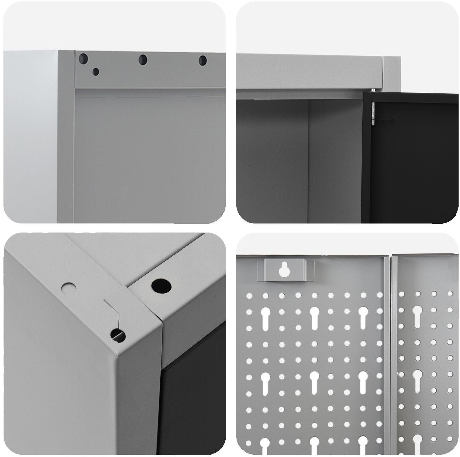 Das Set enthält verstellbare Füße, mit denen sich der Schrank auf unebenen Böden leicht ausrichten lässt. So kann der Nutzer unabhängig von den Raumbedingungen Stabilität und Sicherheit bei der Arbeit genießen.