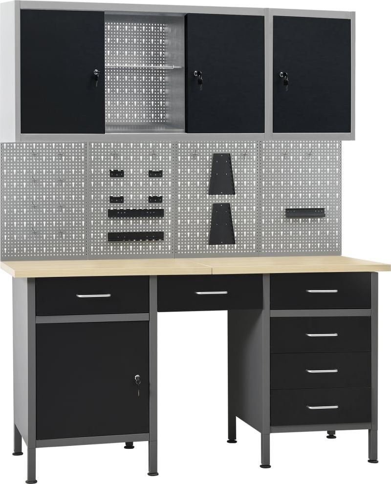 vidaXL Arbeitstisch mit 4 Wandpaneelen und 2 Schränken