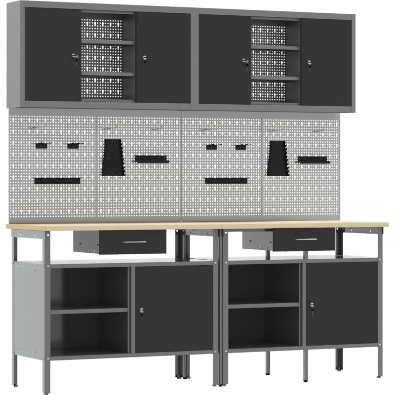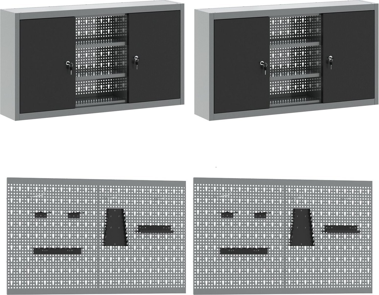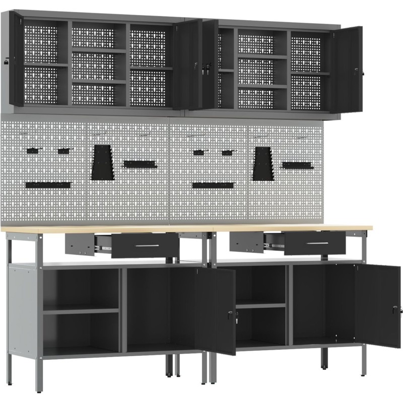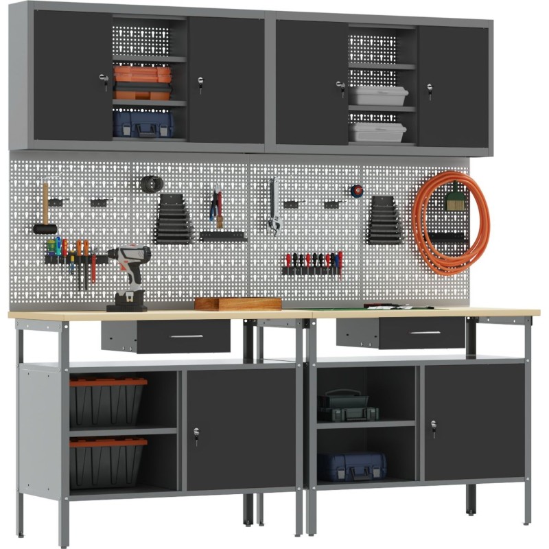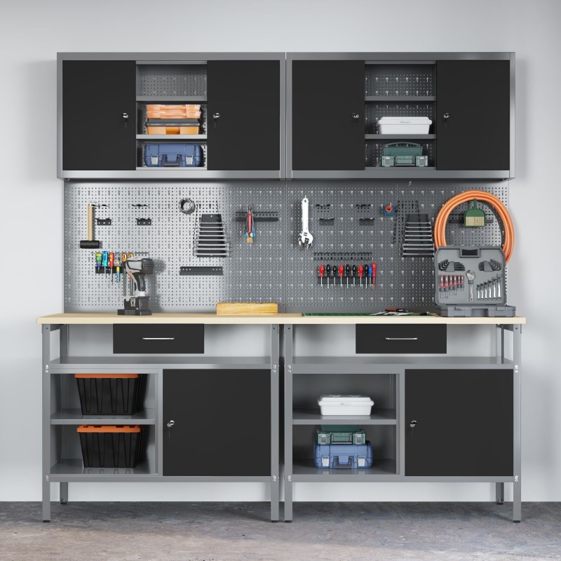 Dieses Set aus Werkzeugtafeln eignet sich ideal, um deinen Arbeitsplatz zu organisieren und unordentliche Bereiche in funktionale Zonen zu verwandeln – perfekt für DIY-Projekte oder professionelle Aufgaben. Das moderne Design in Grau und Schwarz sorgt dafür, dass deine Werkzeuge leicht zugänglich sind, und verleiht deiner Werkstatt oder Garage einen ansprechenden, industriellen Stil.