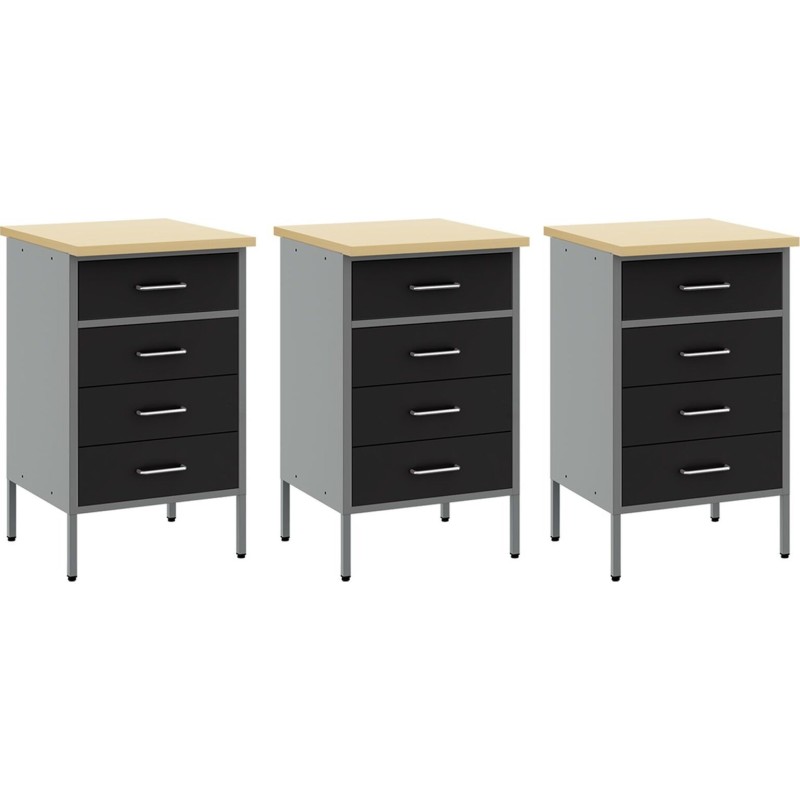 vidaXL Set mit 6 großen Arbeitsschränken aus schwarzem Stahl mit verstellbaren Füßen