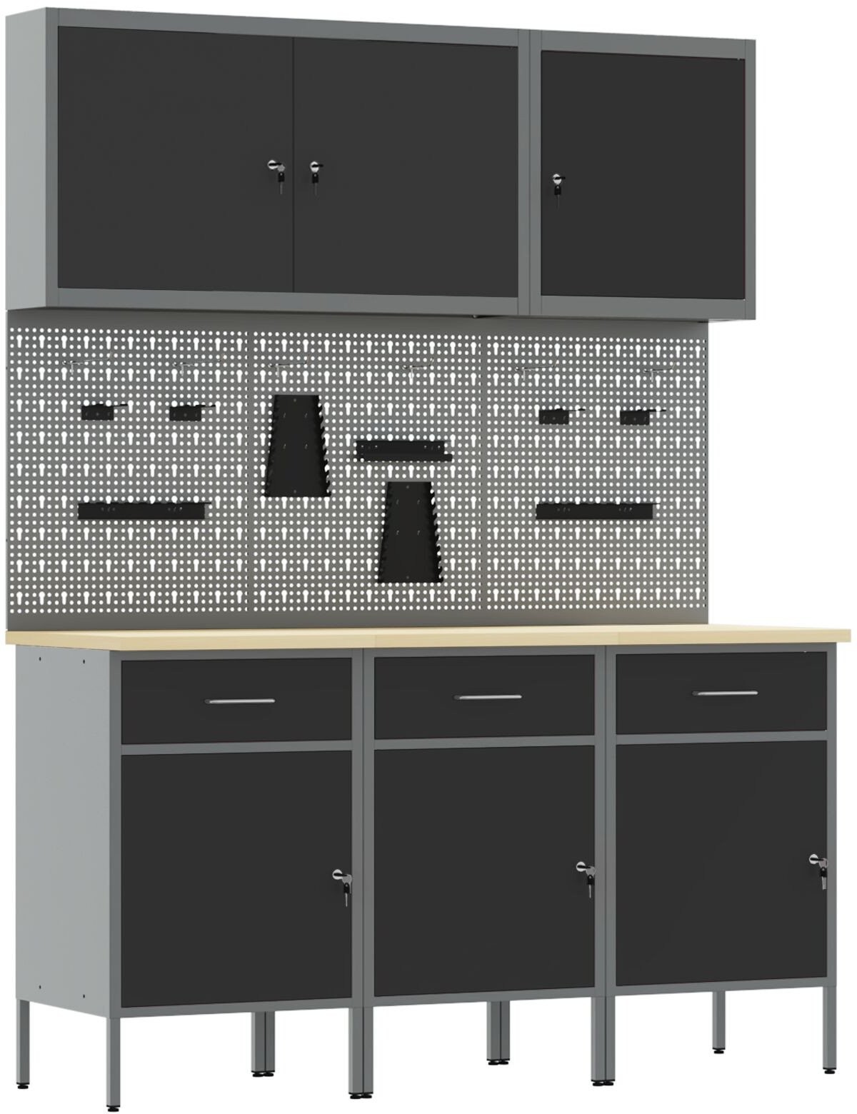 vidaXL Arbeitsschrankset, 6-teilig, schwarz, Stahl, groß