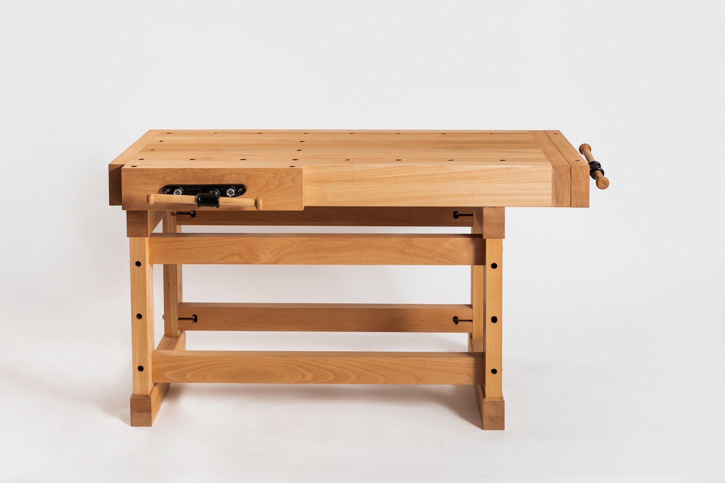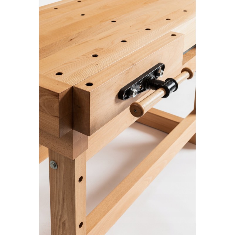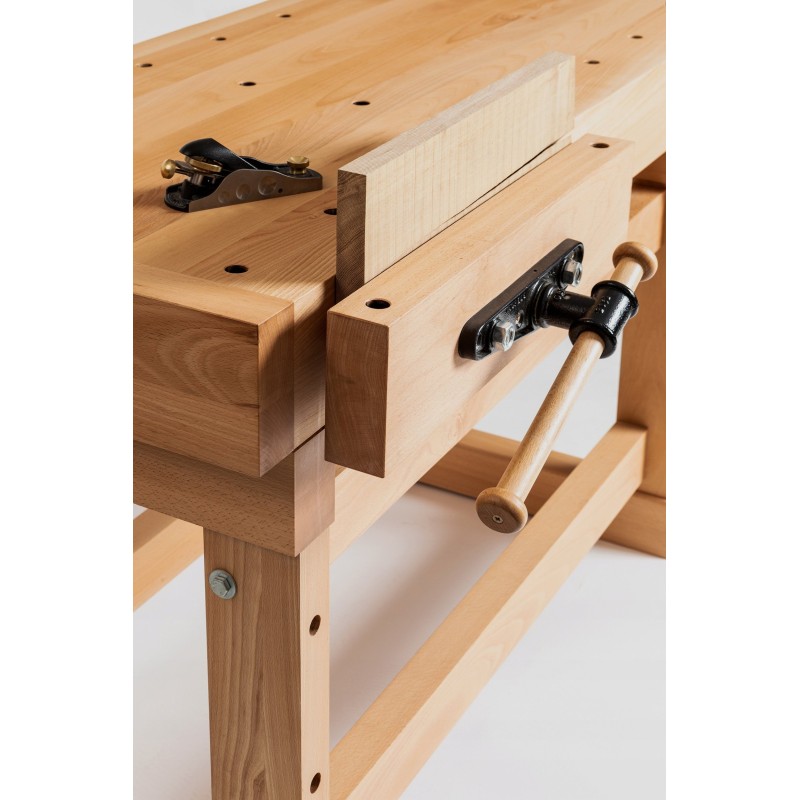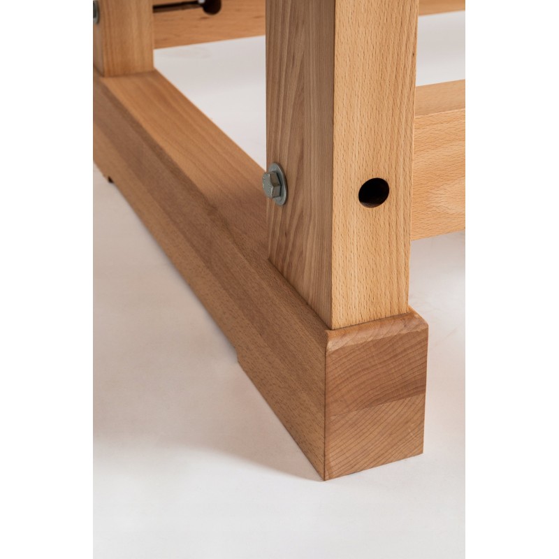 Massiver Holzhobeltisch aus hochwertigem, gedämpftem Buchenholz.