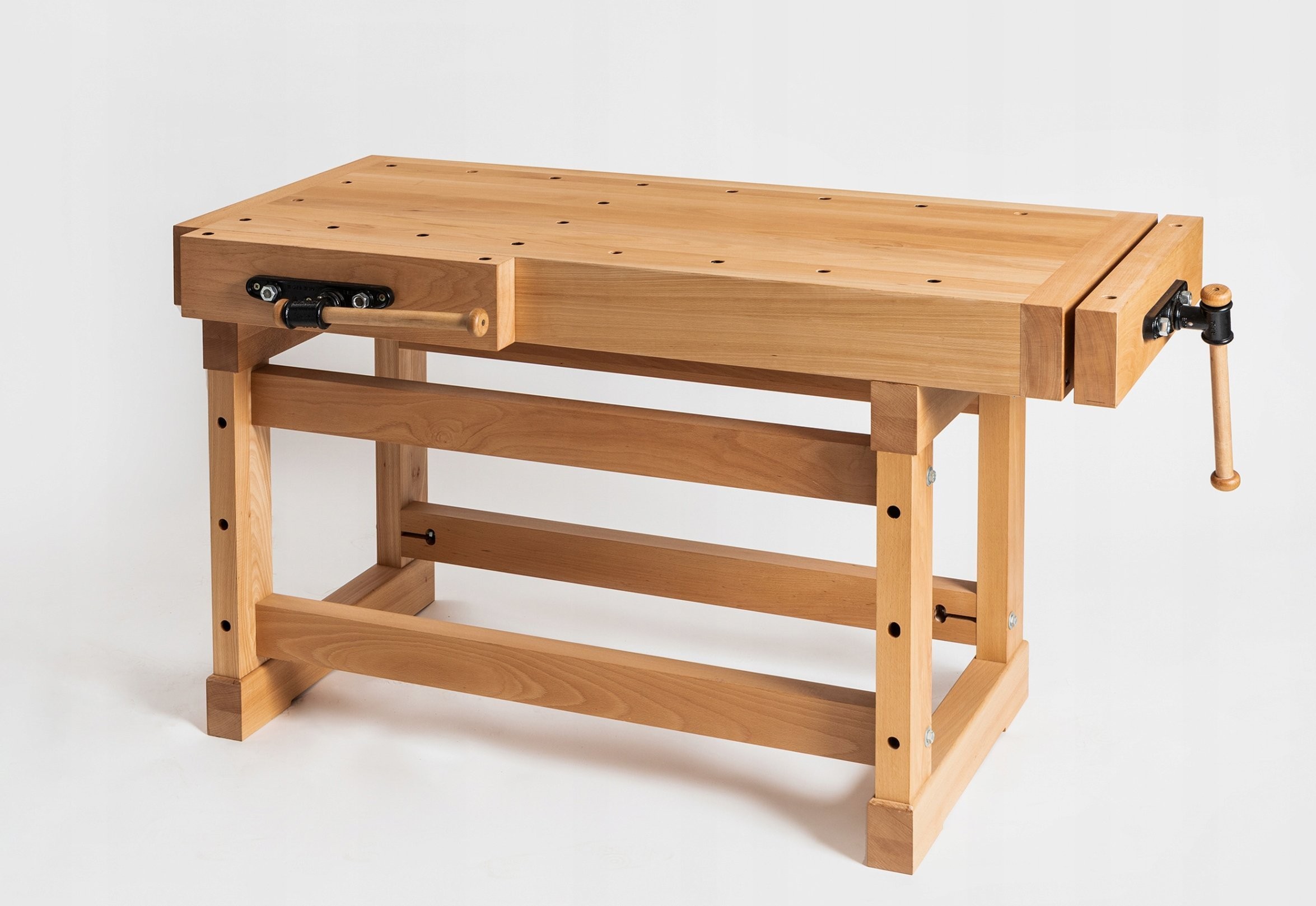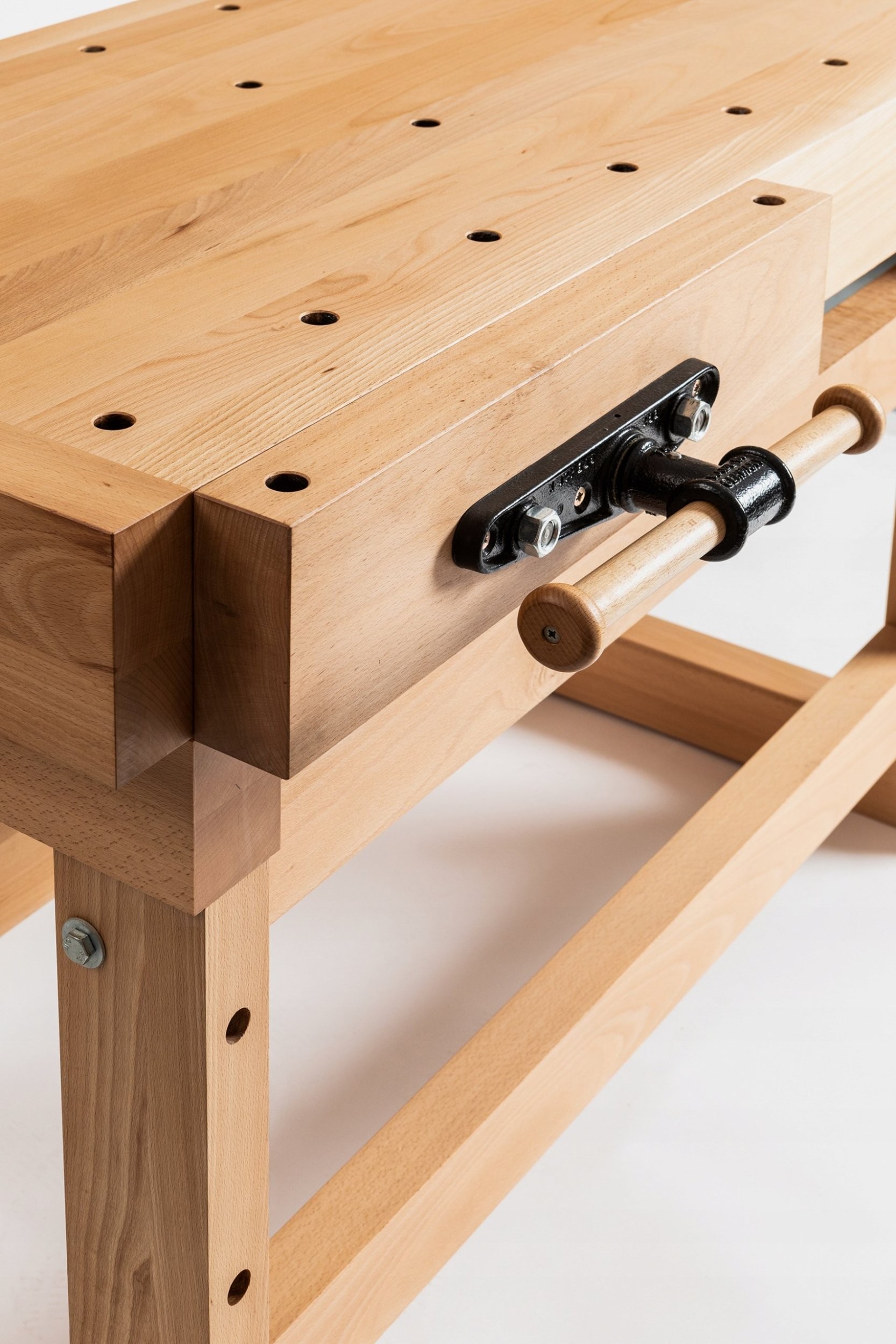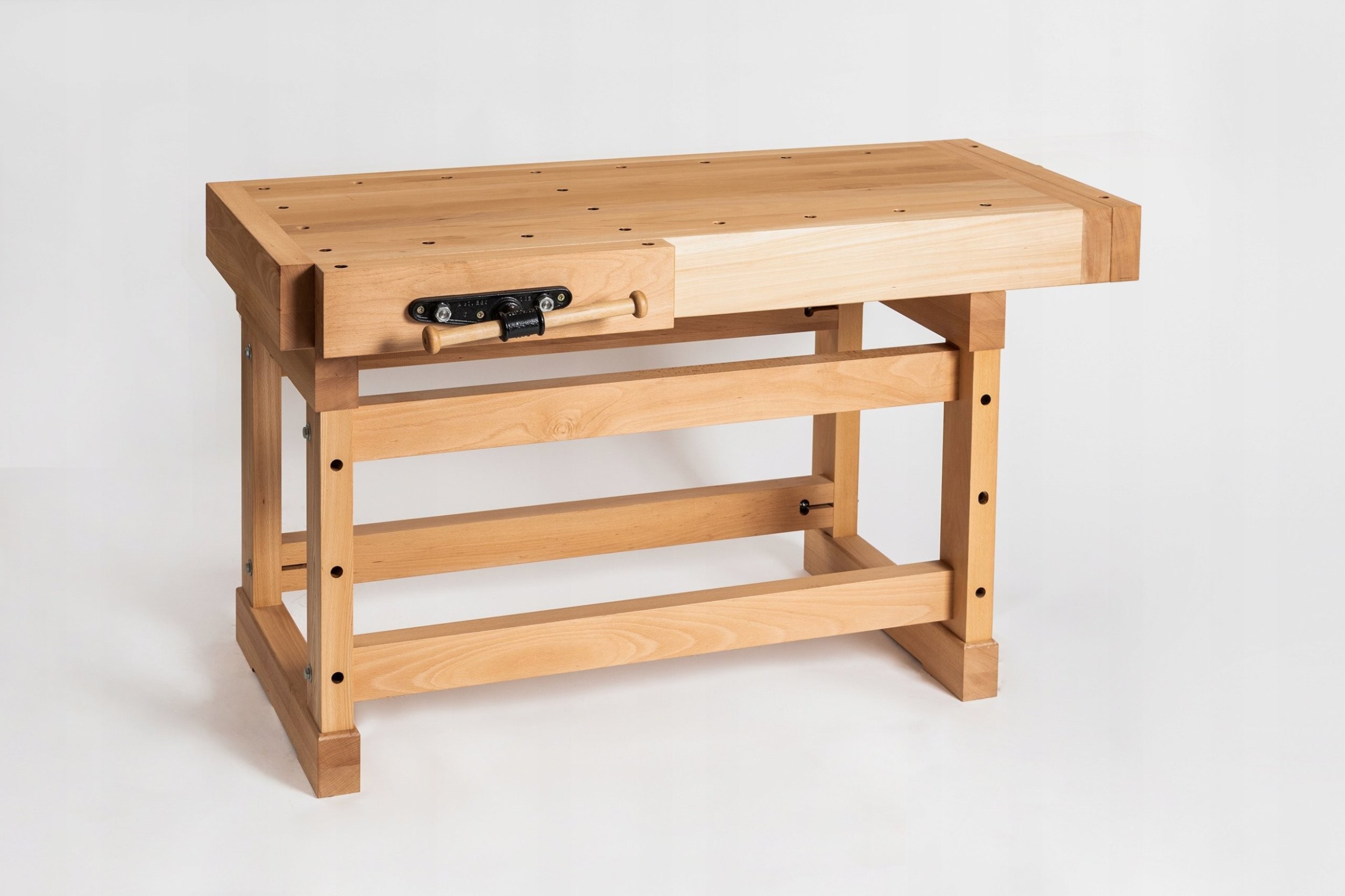 Massiver Holzhobeltisch aus hochwertigem, gedämpftem Buchenholz.