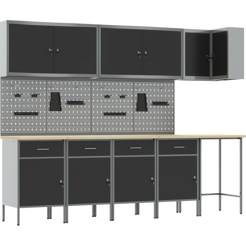 Dieser Arbeitsschrank im Industrial-Stil wurde speziell für den intensiven Einsatz in jeder Werkstatt oder Garage entwickelt. Mit seiner markanten schwarz-grauen Oberfläche ist er nicht nur praktisch, sondern sieht auch in Ihrem Arbeitsbereich großartig aus.