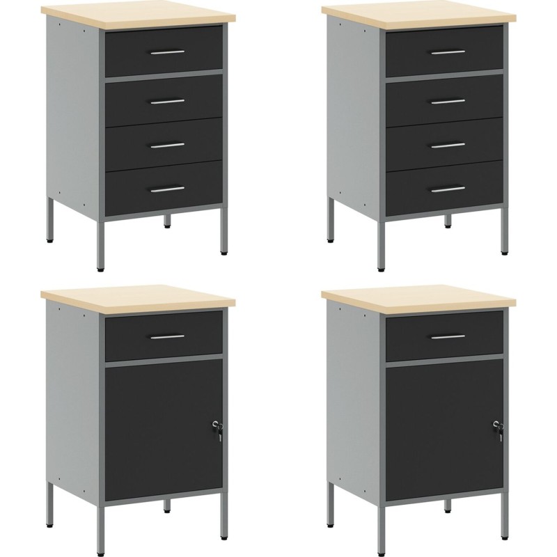 Dieses Set aus Arbeitsschränken ist die ideale Lösung für die Aufbewahrung von Werkzeugen und Materialien in jeder Garage oder Werkstatt. Es besteht aus strapazierfähigem Stahl und Holzwerkstoff und besticht durch ein modernes, industrielles Design, das jeder Werkstatt Stil verleiht und gleichzeitig äußerst funktional ist.