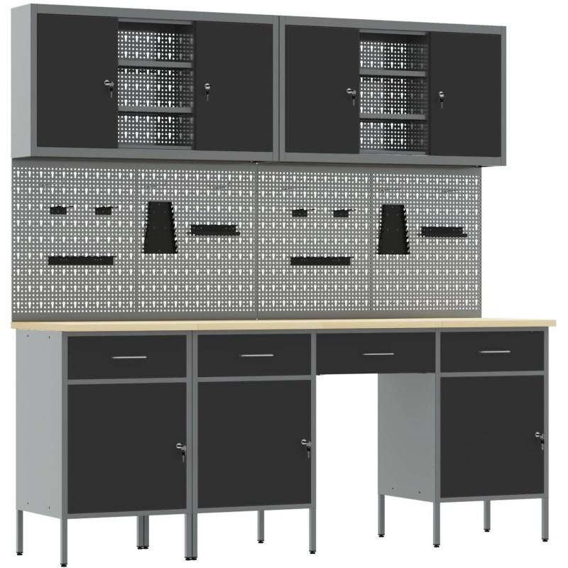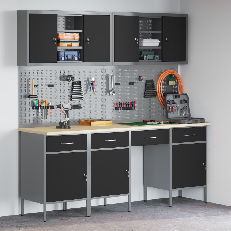 - Lieferumfang: 4x Schrank + 4x Lochwand + 2x Werkzeugschrank