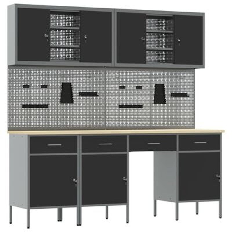 vidaXL Werkbank-Set, 10-teilig, schwarzer Stahl – Die ideale Lösung für jede Werkstatt