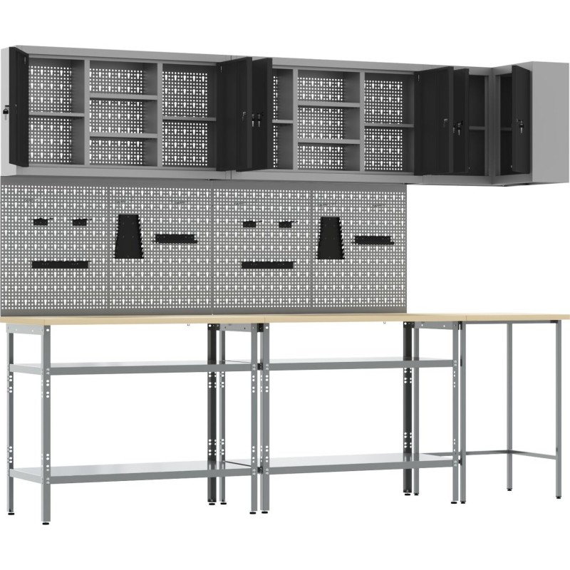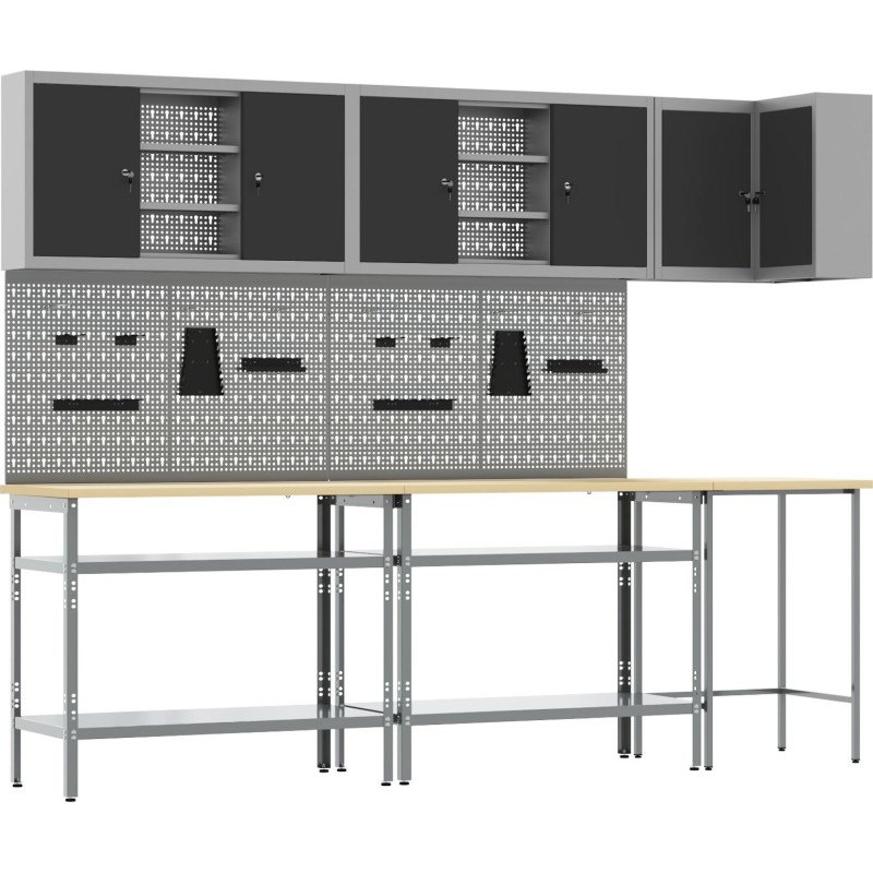 vidaXL Set mit 9 mittelgroßen, verstellbaren Werkbänken in Stahlgrau