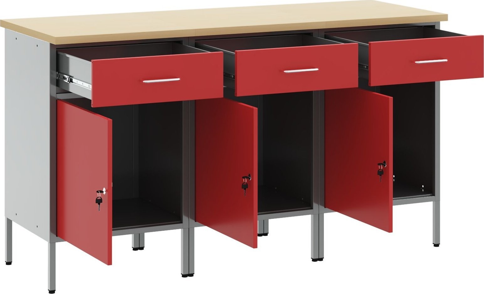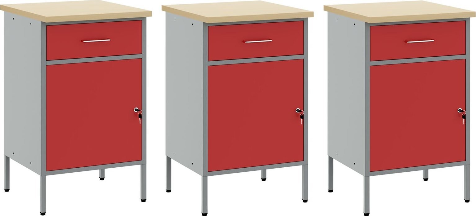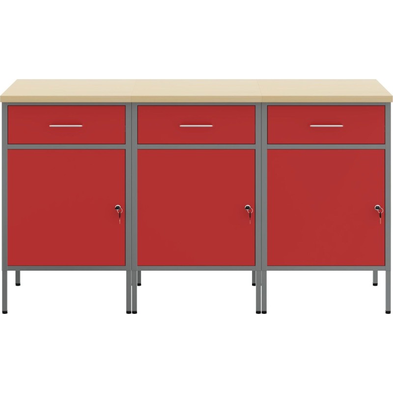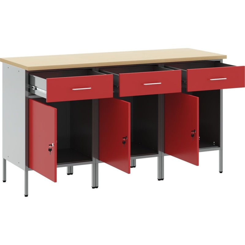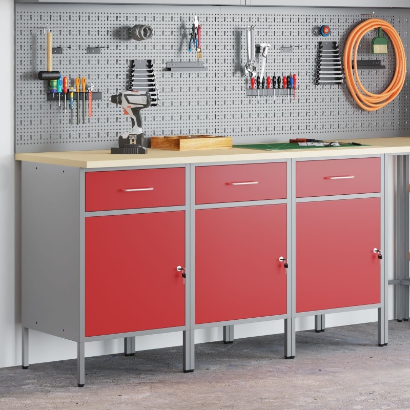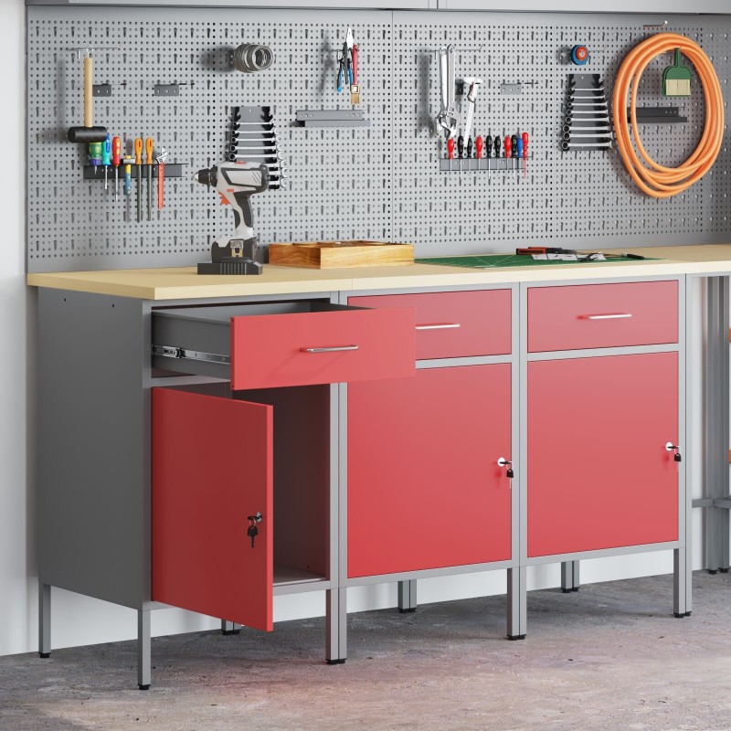 - Dieser Arbeitsschrank verfügt über eine robuste Konstruktion aus hochwertigem Stahl und Holzwerkstoffen und hält somit dem intensiven täglichen Gebrauch problemlos stand.