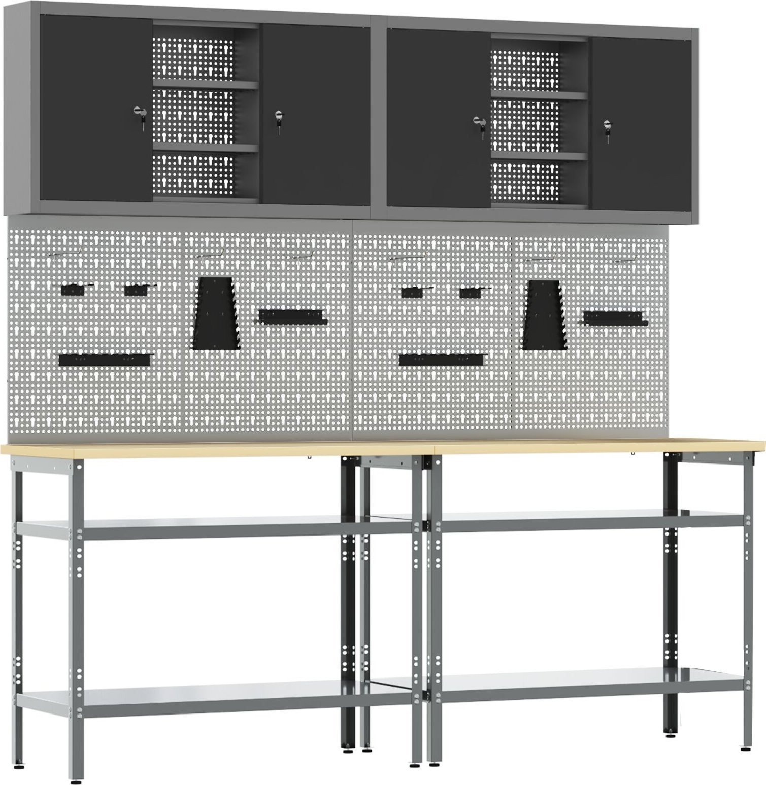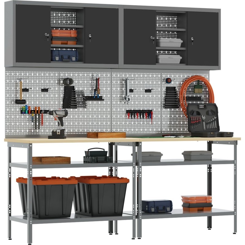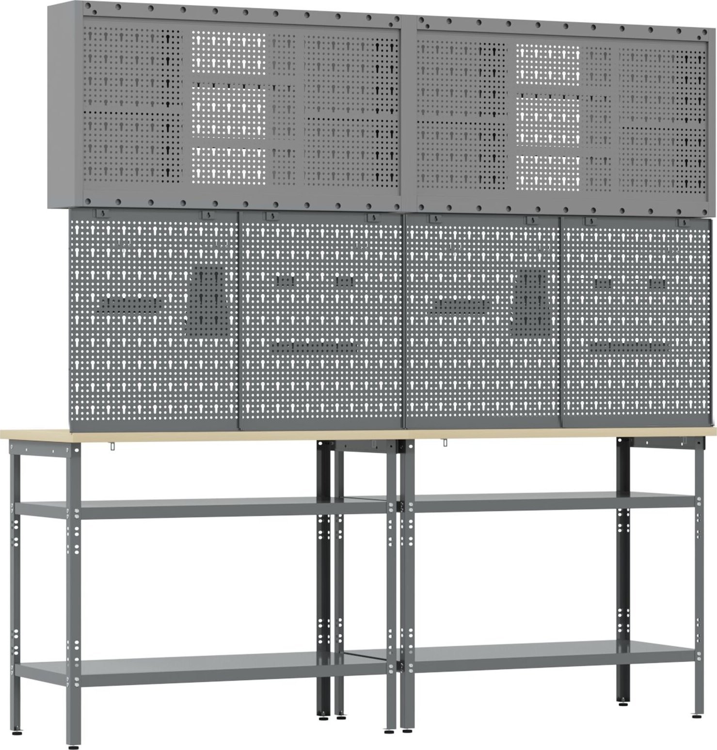 - Lieferumfang: 2 x Tisch, 4 x Lochwand, 2 x Schrank mit Lochwand