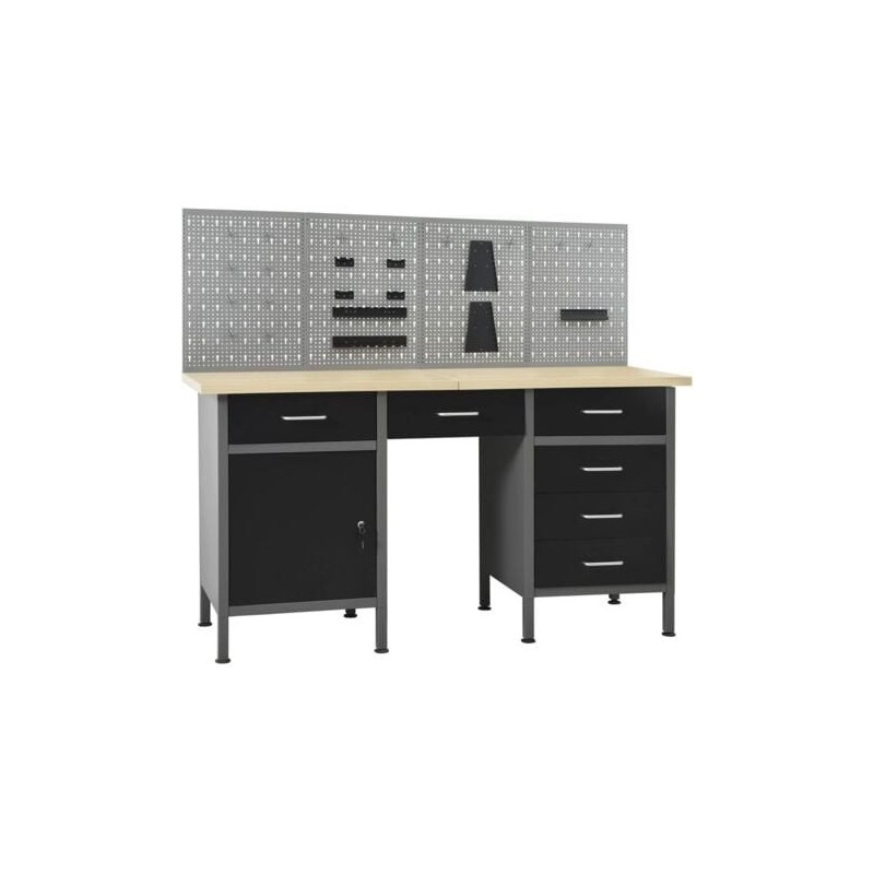 Das vidaXL Arbeitsschrankset ist die perfekte Aufbewahrungslösung für verschiedene Arbeitsbereiche wie Garagen, Büros oder Werkstätten. Das aus drei Elementen bestehende Set verbindet elegantes schwarz-graues Design mit Funktionalität, wodurch es sowohl ästhetisch als auch praktisch ist. Das Holzoptik-Muster auf der Arbeitsplatte verleiht ihm einen modernen Charakter und sorgt gleichzeitig für hohen Nutzkomfort.
