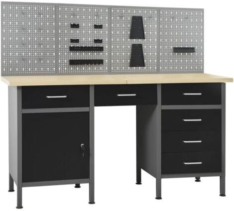 3-teiliges Arbeitsschrankset von vidaXL in Schwarz und Grau aus Verbundholz und Stahl