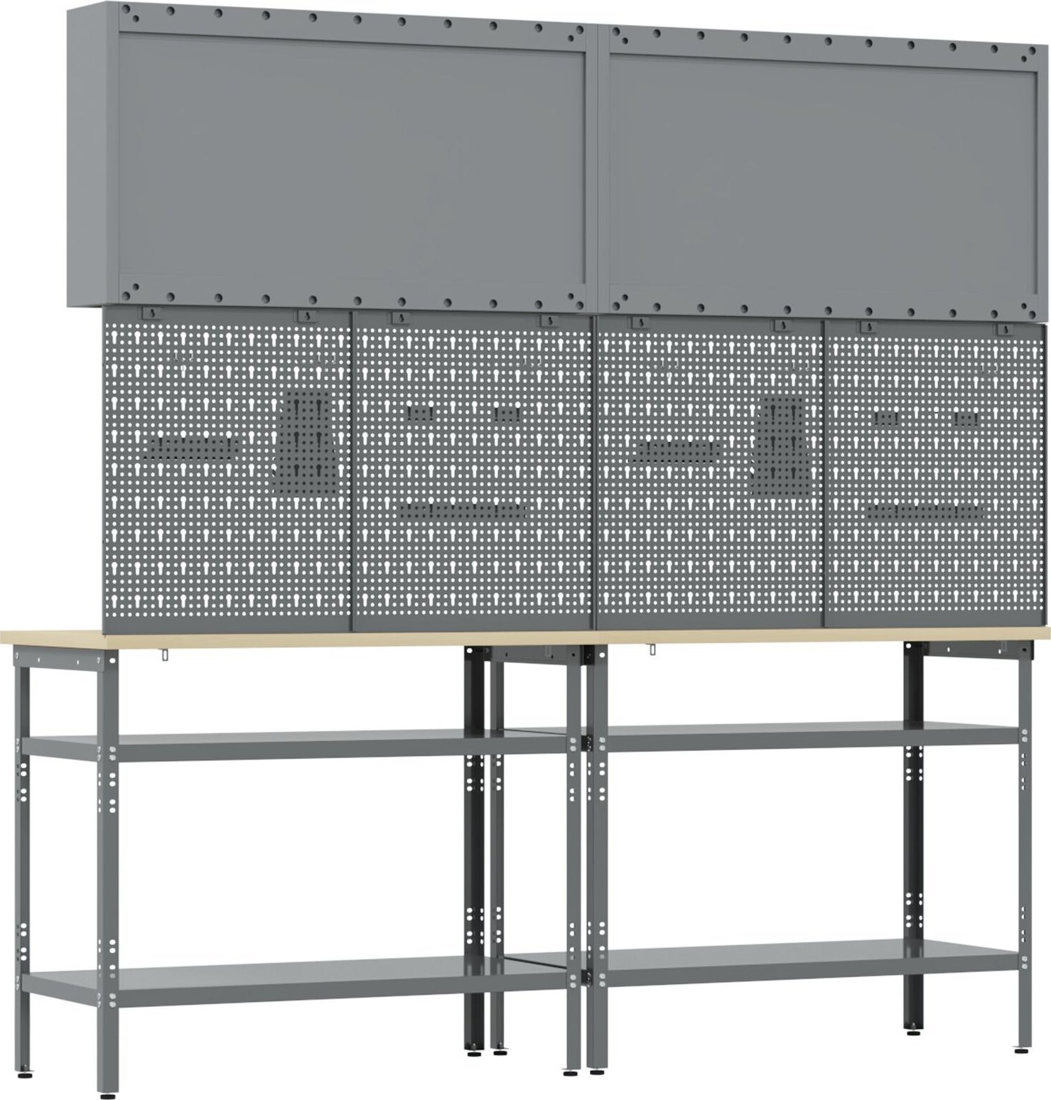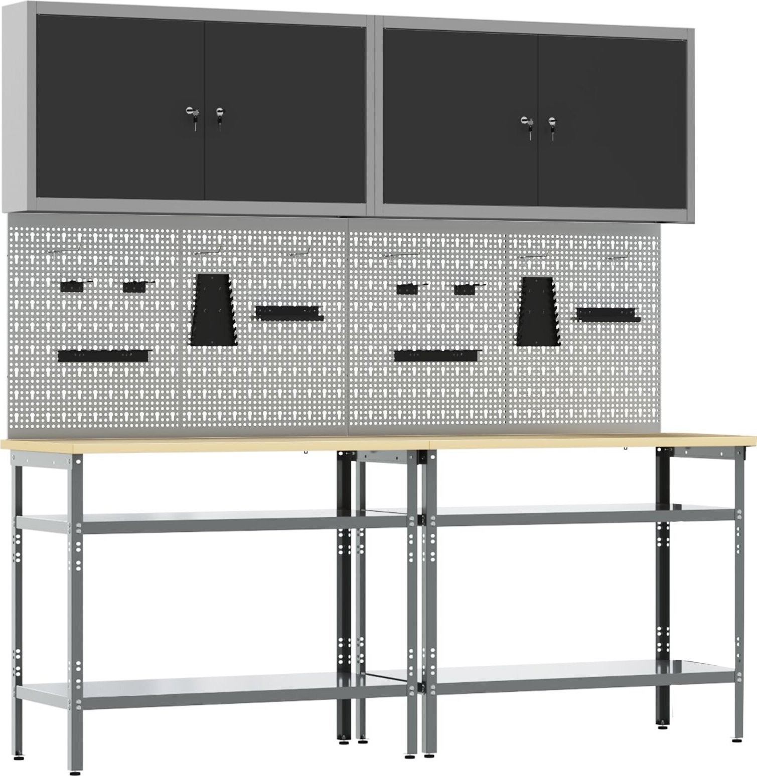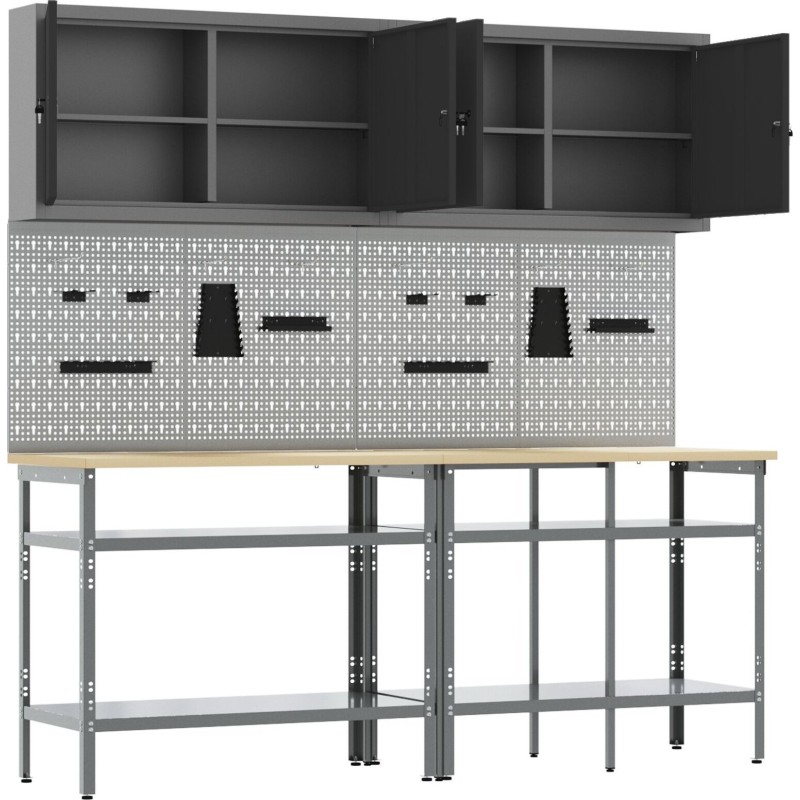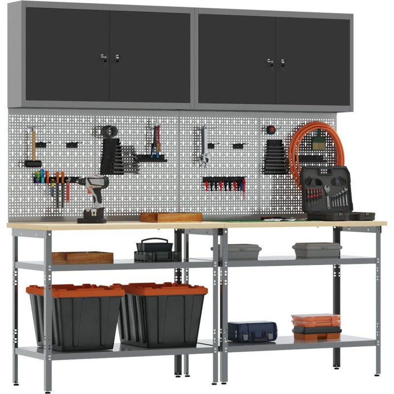 - Lieferumfang: Werkzeugtafel, Halterung, Haken, Schränke, Tisch