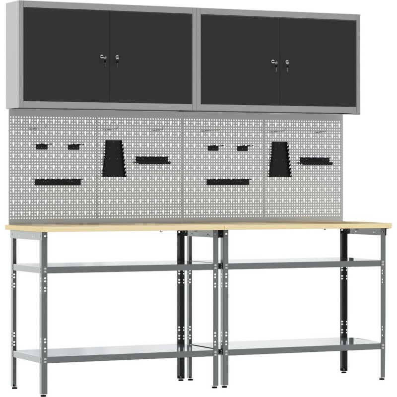 vidaXL Set mit 6 grauen Stahl-Werkzeugtafeln, rechteckig, im Industriestil