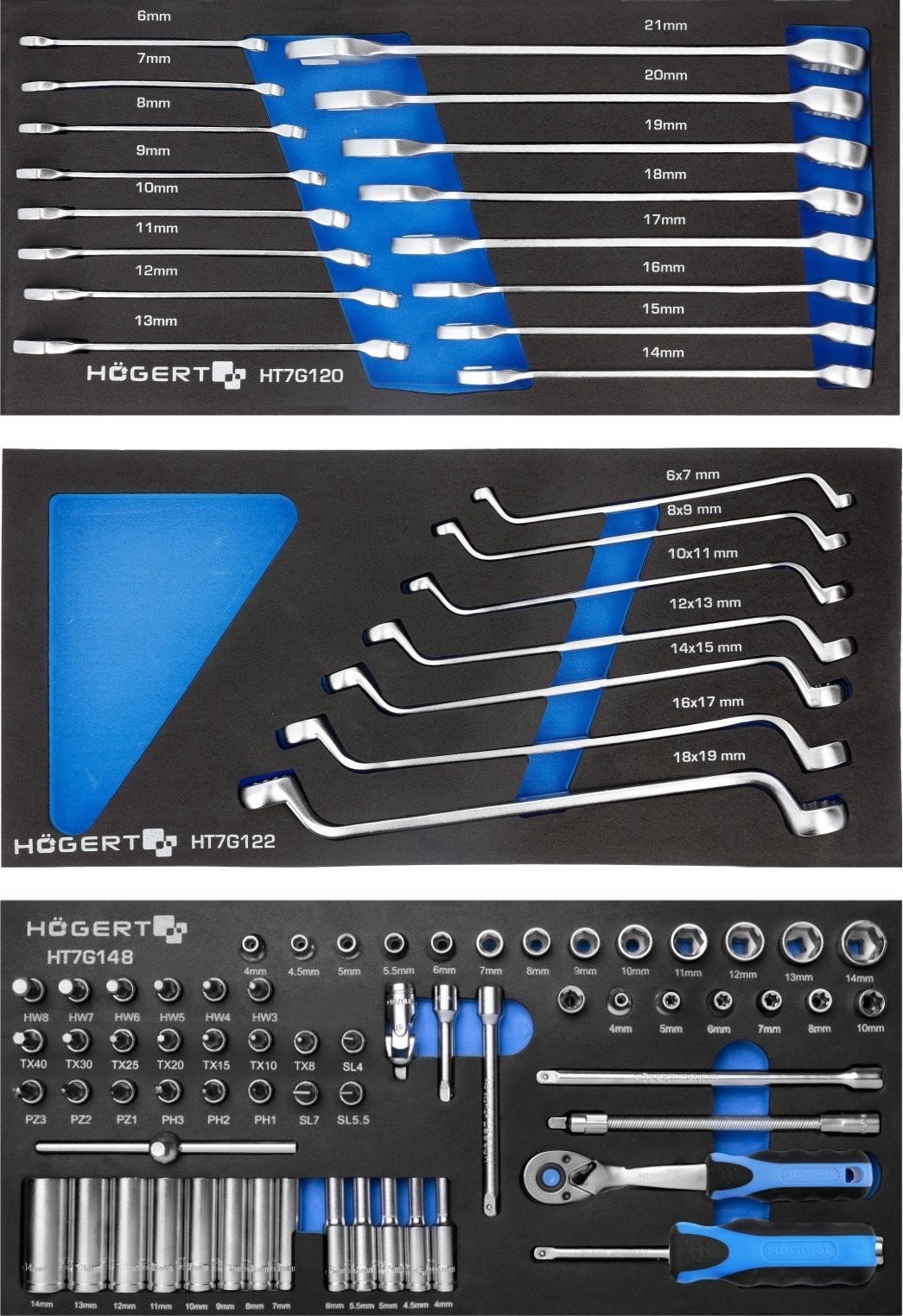 - Einsatz HT7G120 Satz Flach- und Ring-Schraubenschlüssel, 16-teilig (HT1W406-HT1W421),