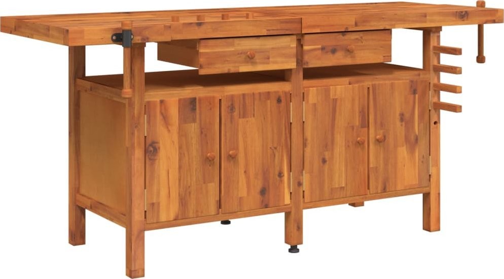 vidaXL vidaXL Arbeitstisch mit Schubladen und Schraubstöcken, 192 x 62 x 83 cm, Akazie
