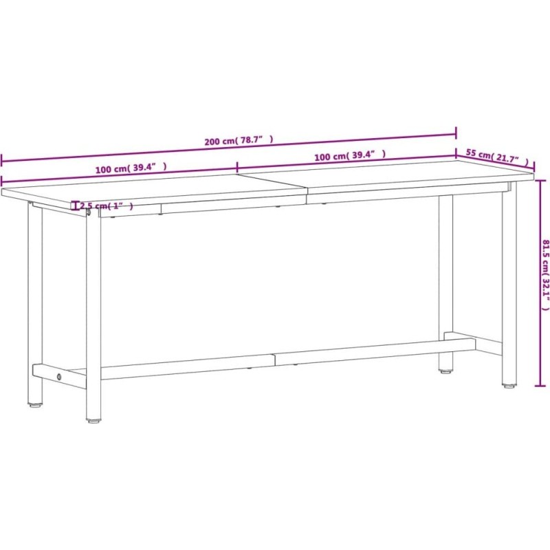 vidaXL Arbeitstisch, 200 x 55 x 81,5 cm, massives Buchenholz und Metall