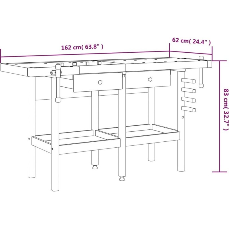 vidaXL vidaXL Arbeitstisch mit Schubladen und Schraubstöcken, 162 x 62 x 83 cm, Akazie