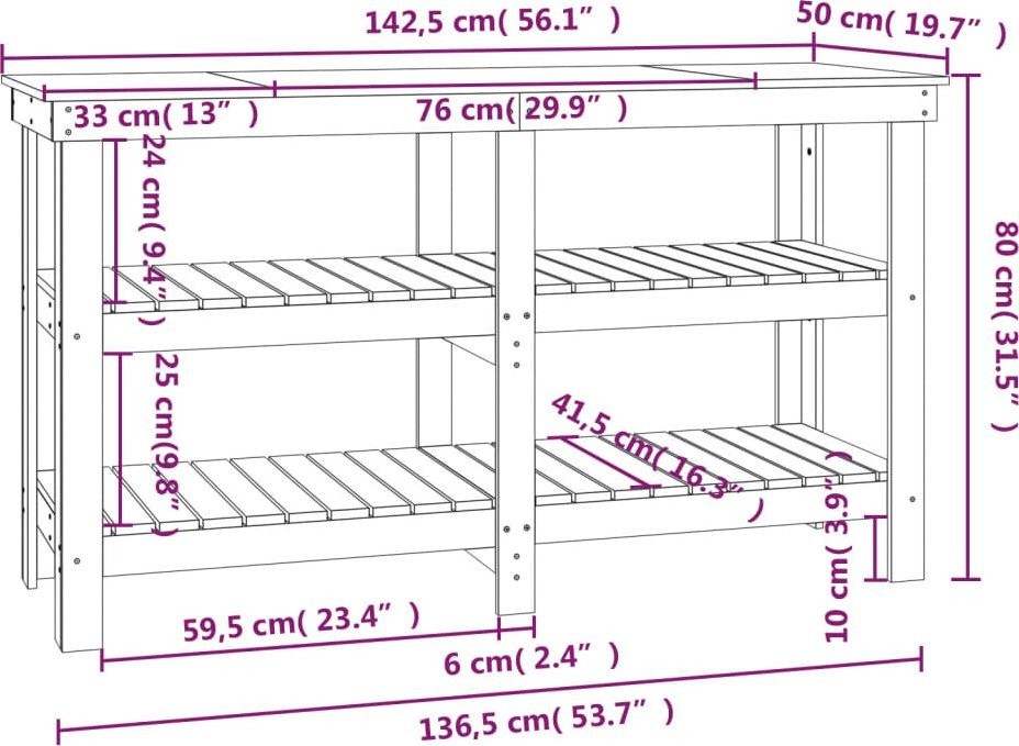 - Viel Stauraum: Dieser Arbeitstisch mit Regalen bietet viel Platz zum Aufbewahren und Ordnen Ihrer Werkzeuge, sodass diese leicht zugänglich sind.
