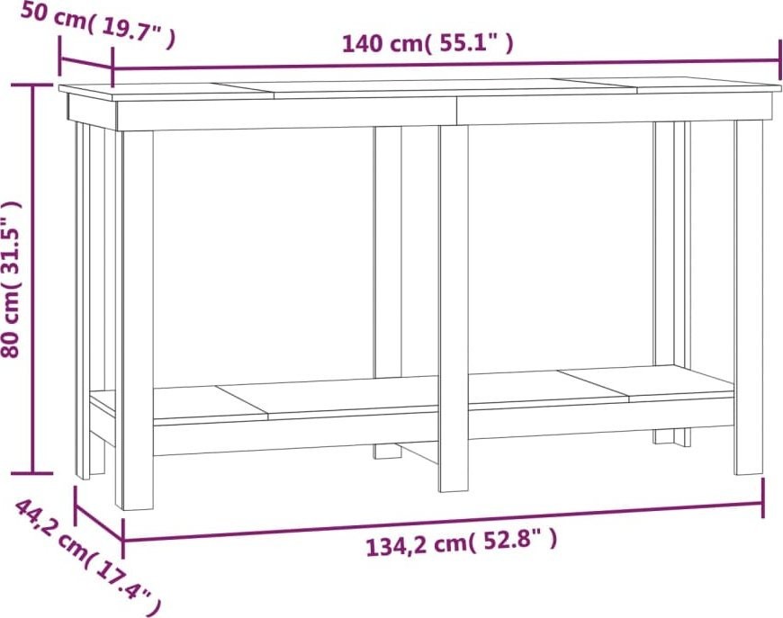 vidaXL vidaXL Arbeitstisch, 140 x 50 x 80 cm, massives Kiefernholz