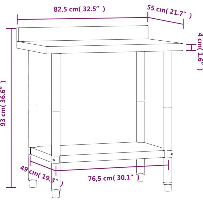 vidaXL Küchentisch mit Aufkantung, 82,5 x 55 x 93 cm, Edelstahl