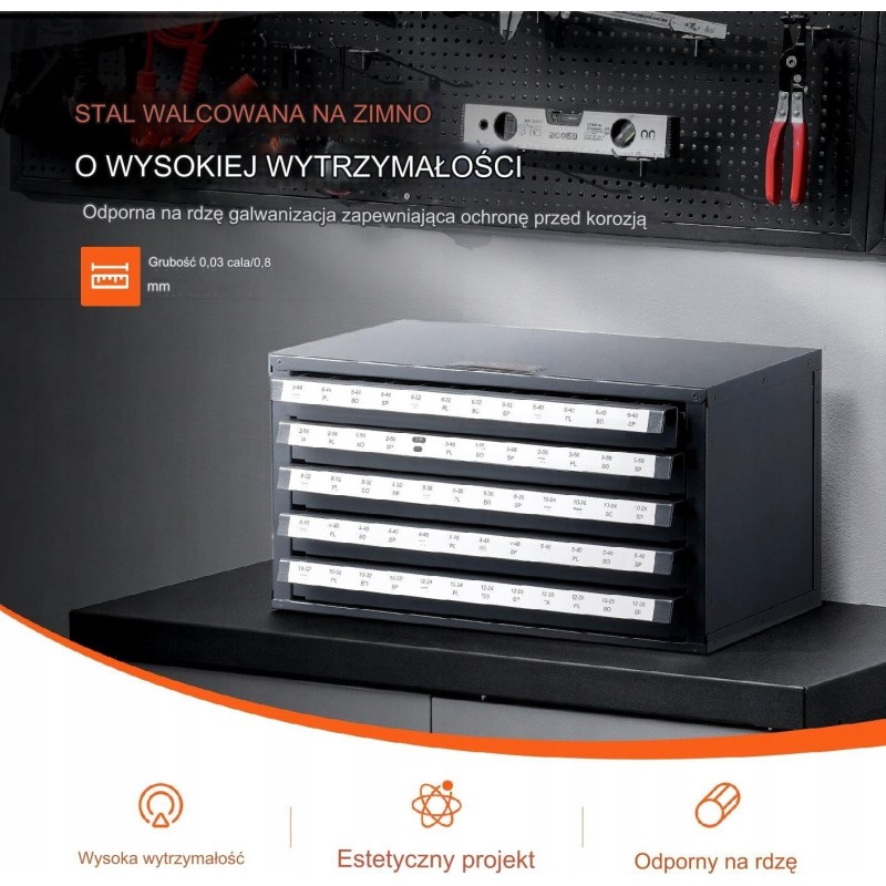 Stahl-Aufbewahrungsschrank für Gewindebohrer, 5 Schubladen, 60 Fächer