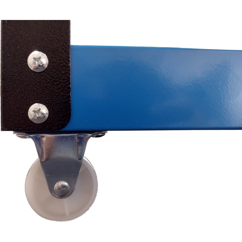 Ausgestattet mit vier Rollen – zwei festen und zwei Lenkrollen, alle mit Kugellagern – sowie einem Metallgriff für einfaches Manövrieren und einer praktischen Schublade.