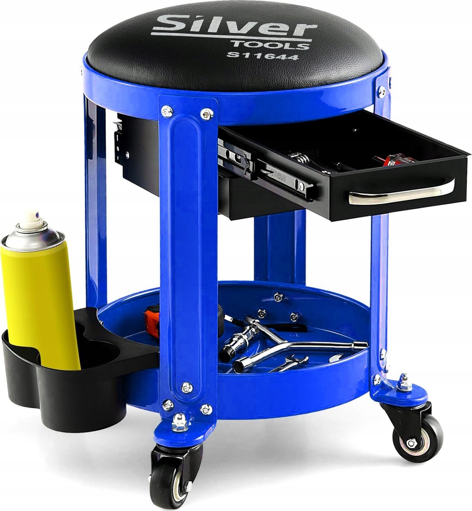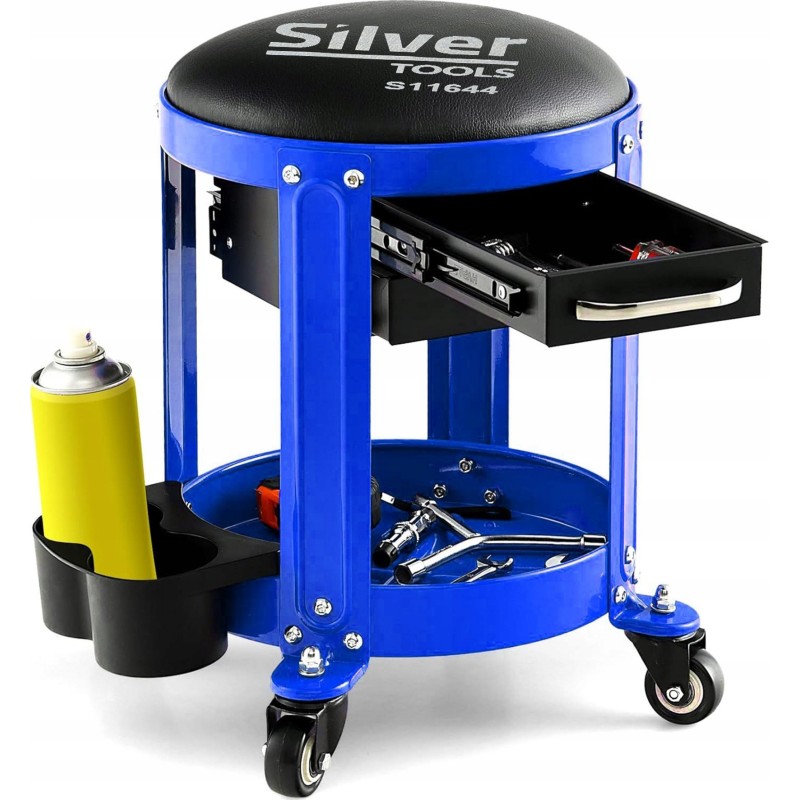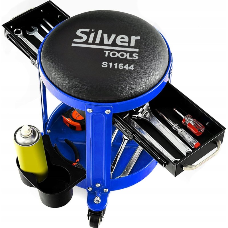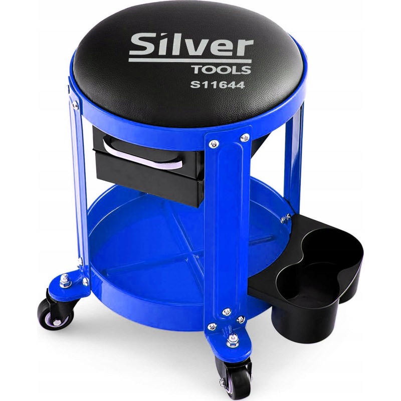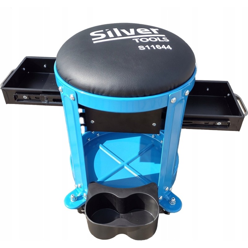 An der Unterseite des Hockers befindet sich viel Platz, um die für die Arbeit notwendigen Werkzeuge und Zubehörteile zu organisieren.