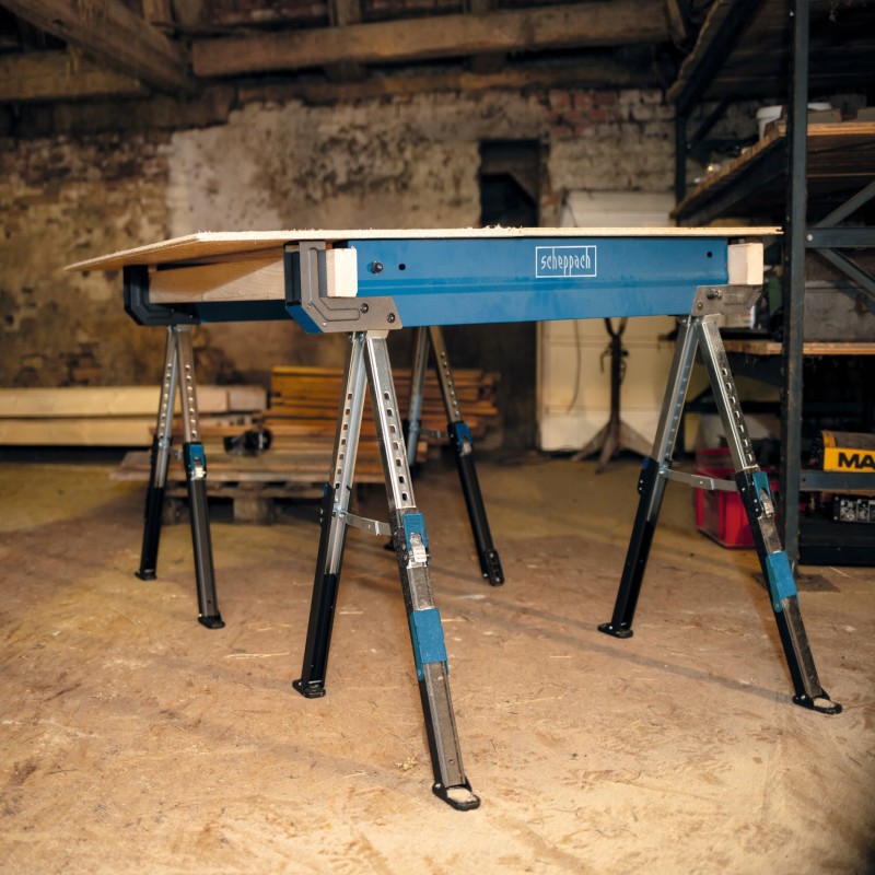 ???? Der Scheppach-Werkbankständer MWB600 eignet sich ideal zum Aufstellen einer Arbeitsplatte oder eines Tisches auf der Baustelle, im Keller oder im Garten.