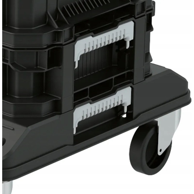 Egal, ob Sie Connect-Werkzeugkisten und -Organizer darauf platzieren, Baumaterial transportieren oder einen 18-Liter-Eimer Beton laden möchten – dieser Wagen erledigt die Aufgabe.