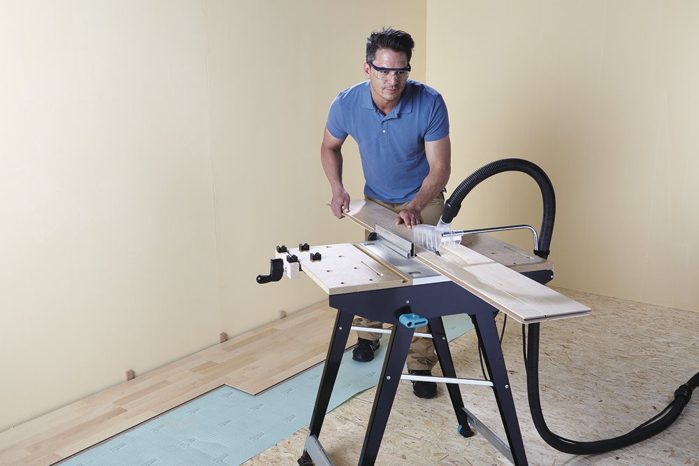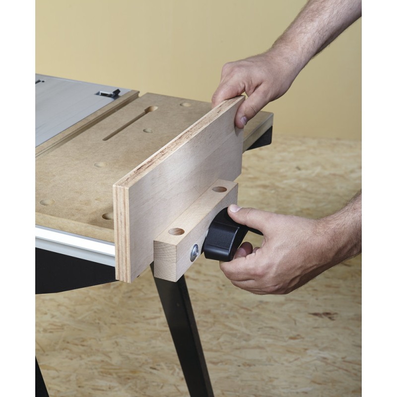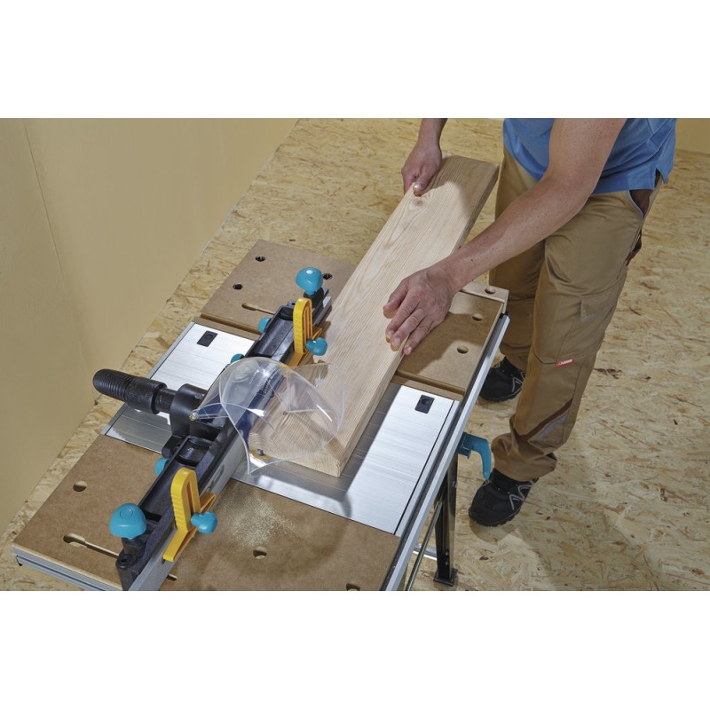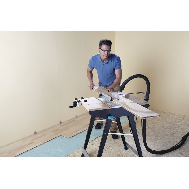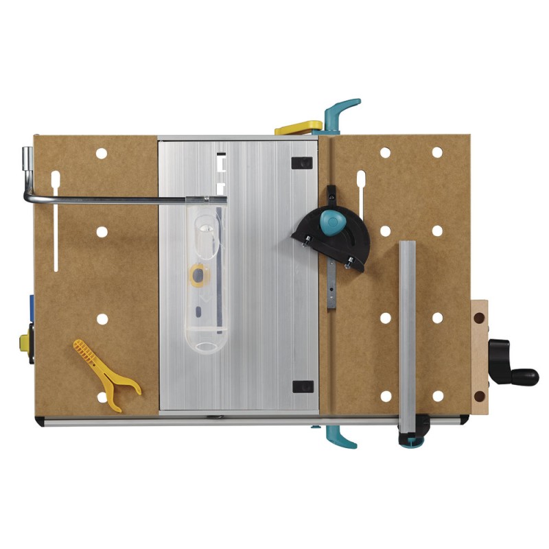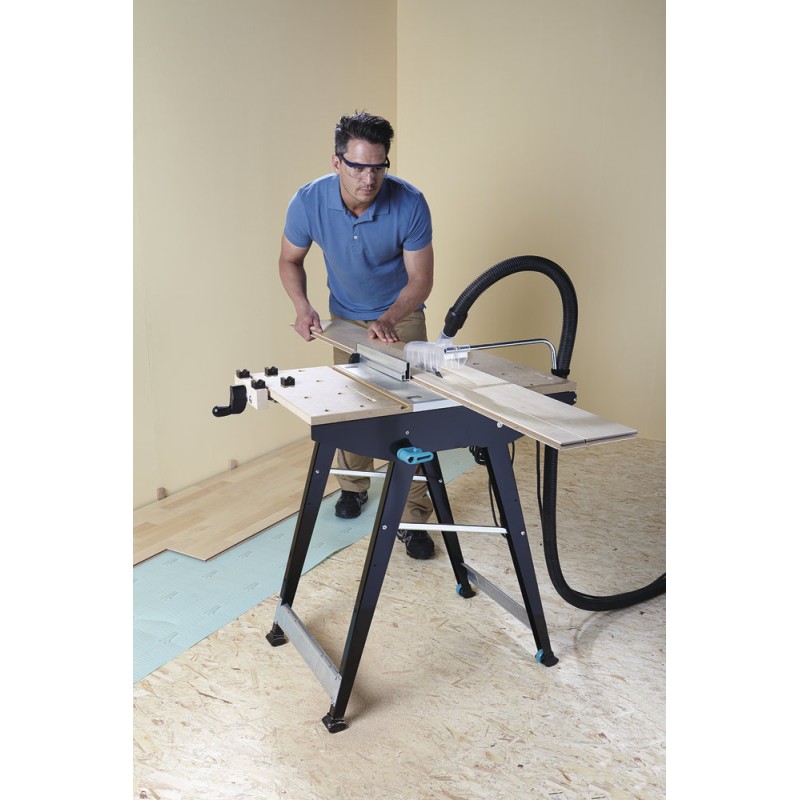 - Einsetzbar als Maschinentisch in Verbindung mit einer Handkreissäge, einer Stichsäge oder einer Oberfräse (nur in Verbindung mit einer Fräsführung – Art.-Nr. 6901000) sowie als Arbeitstisch