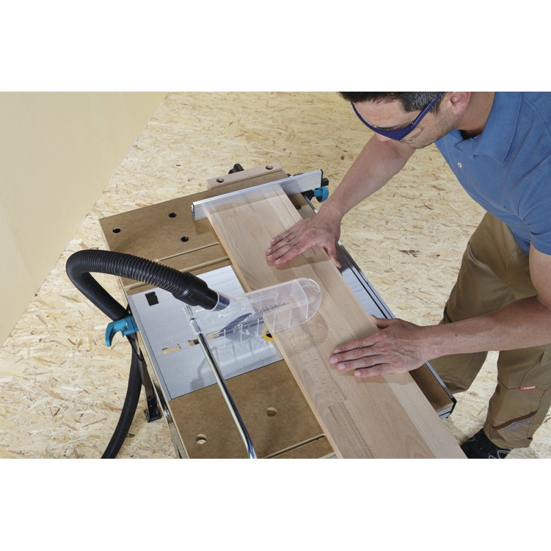 - Spaltkeil als separates Zubehör erhältlich, Art.-Nr. 6903000 (bis 160 mm) oder Art.-Nr. 6904000 (160–200 mm), ermöglicht den Einsatz von Handkreissägen, die nicht mit einem Spaltkeil ausgestattet sind.