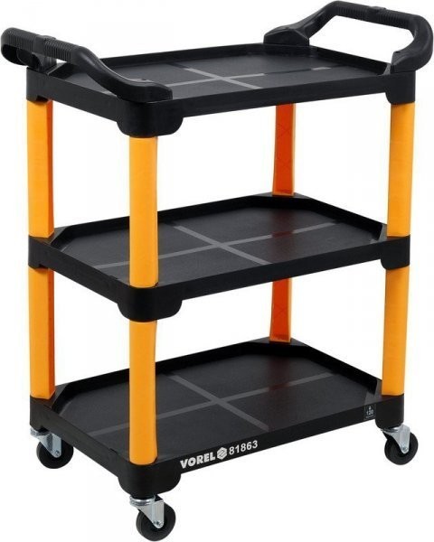 TECHNISCHE DATEN:Marke: VorelArtikelnummer: 81863Serie: GRGAbmessungen: 965 x 810 x 435 mmMaterial: PPGewicht: 8,2 kgMax. Tragkraft: 120 kgRollen: JAAnzahl der Rollen: 4Rollendurchmesser: 75 mmAnzahl der Ablagen: 3Ablagentiefe: 20 mmAblagengröße: 660 x 435 mmDer Werkstattwagen aus Verbundwerkstoff ist ein Hilfsmittel zur Aufbewahrung von Werkzeugen, Teilen und Zubehör am Arbeitsplatz, beispielsweise in einer Kfz-Werkstatt, einer Tischlerei oder einer Produktionsstätte. Langlebigkeit: Verbundwerkstoffe sind bekannt für ihre hohe Widerstandsfähigkeit gegen mechanische Beschädigungen und Korrosion, was den Wagen langlebig und widerstandsfähig gegenüber den Arbeitsbedingungen macht.Leichtigkeit: Im Vergleich zu Wagen aus Metall sind Verbundwerkstoff-Wagen in der Regel leichter, was das Bewegen und Manövrieren in der Werkstatt erleichtert.**...