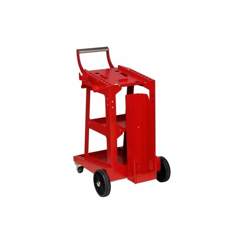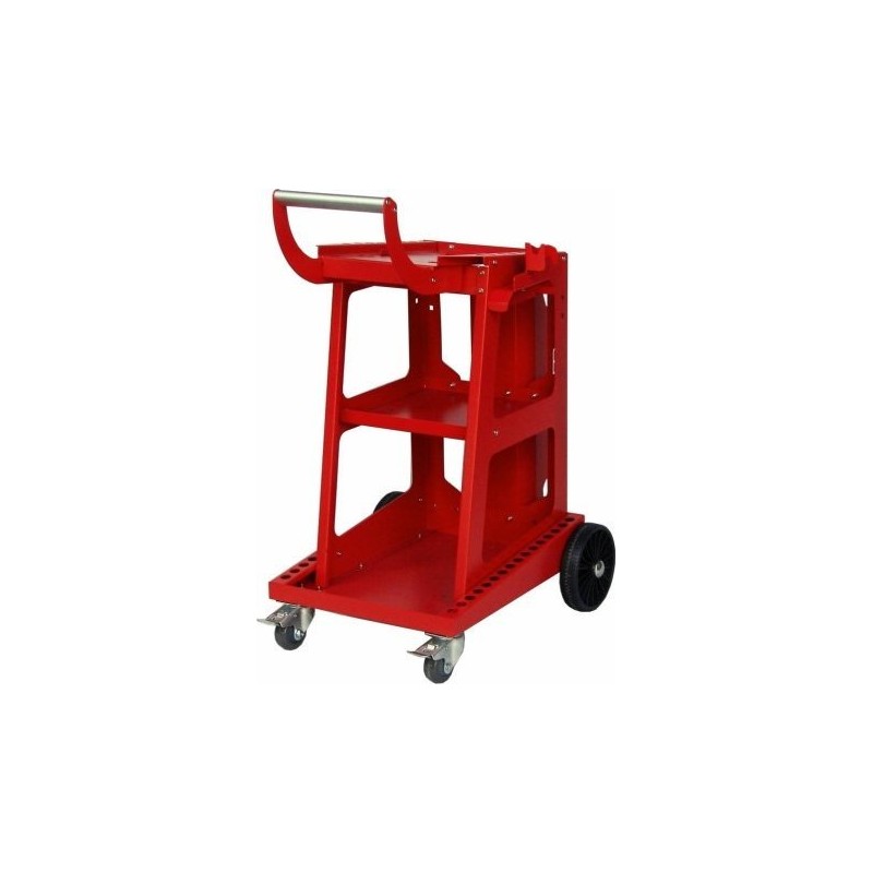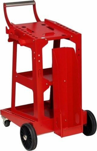 Technische Daten: Abmessungen: Untere Ablage – 55 x 29 cm, Mittlere Ablage – 37 x 29 cm, Obere Ablage – 45 x 28 cm. Robuster Transportwagen der Marke IDEAL zum bequemen Transport von Schweißgeräten, Plasmaschneidern und Gasflaschen sowie für vielfältige Einsatzmöglichkeiten.Lenkbare Vorderräder mit Bremsen, 3 Ablagen, spezielle Ablage für Gasflaschen, Aufhängehaken. Geeignet für Schweißgeräte der Typen: MIG, MAG, WIG, MMA. **Symbolfoto....