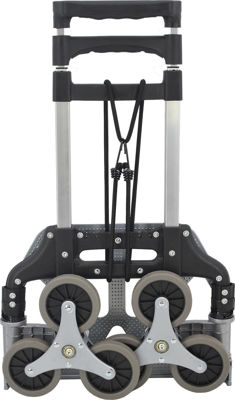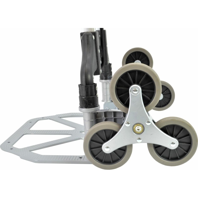 Dreifach gummierte Räder sorgen für leichtes Bewegen auf jedem Untergrund, einschließlich Treppen oder Stufen. Die